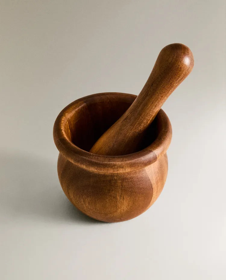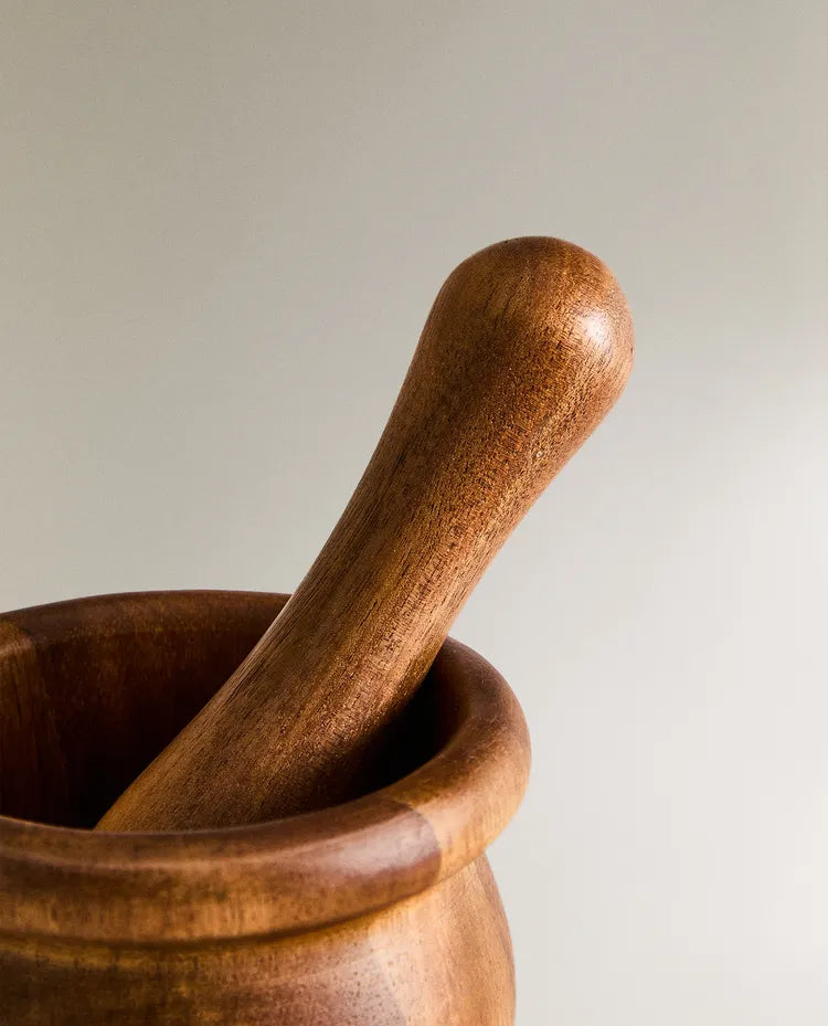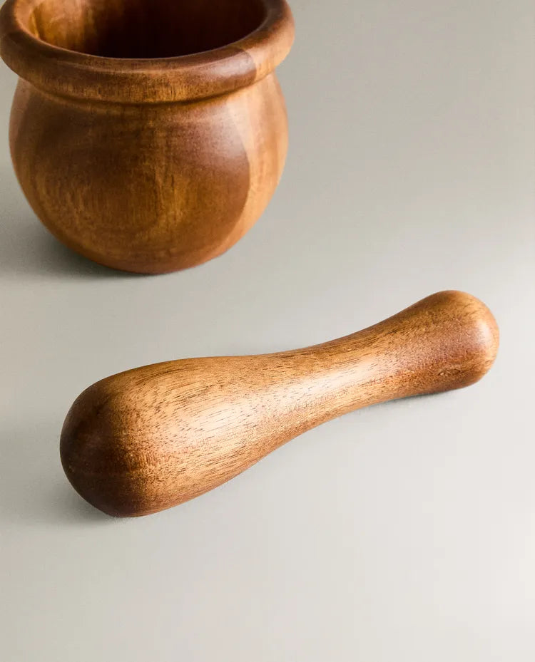 Almofariz de madeira de acácia. Inclui um recipiente e um almofariz, ambos de madeira. Tamanho Tamanho único Read more