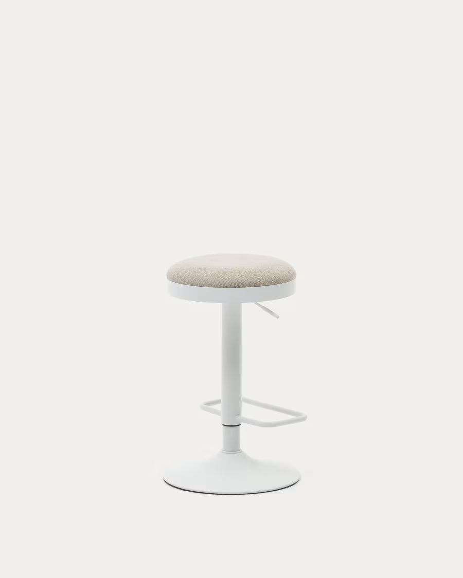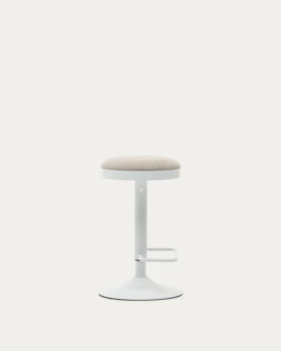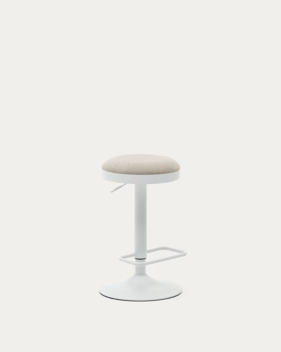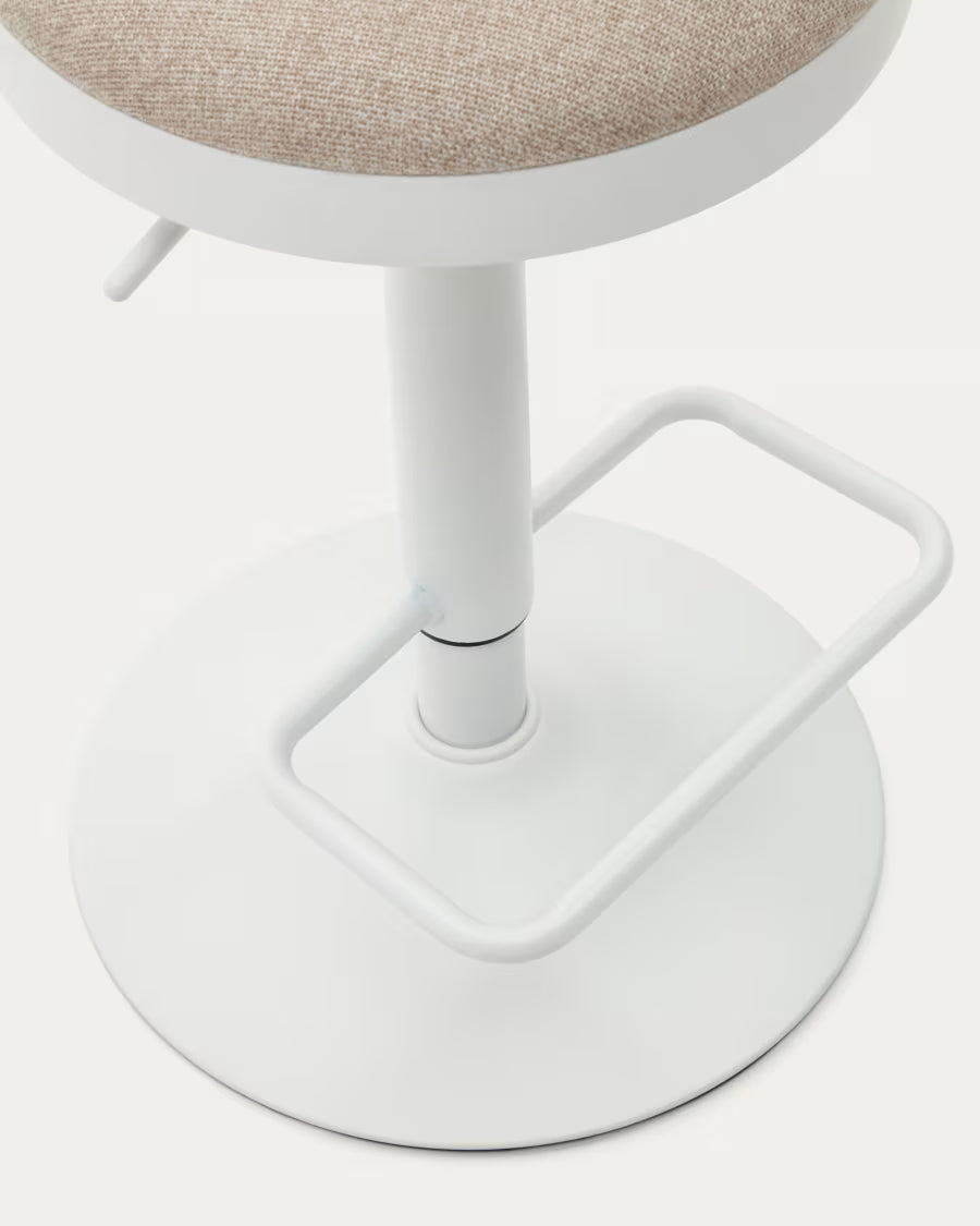 Banco alto Zaib de chenille bege e aço branco mate altura 63-84 cm FSC 100%