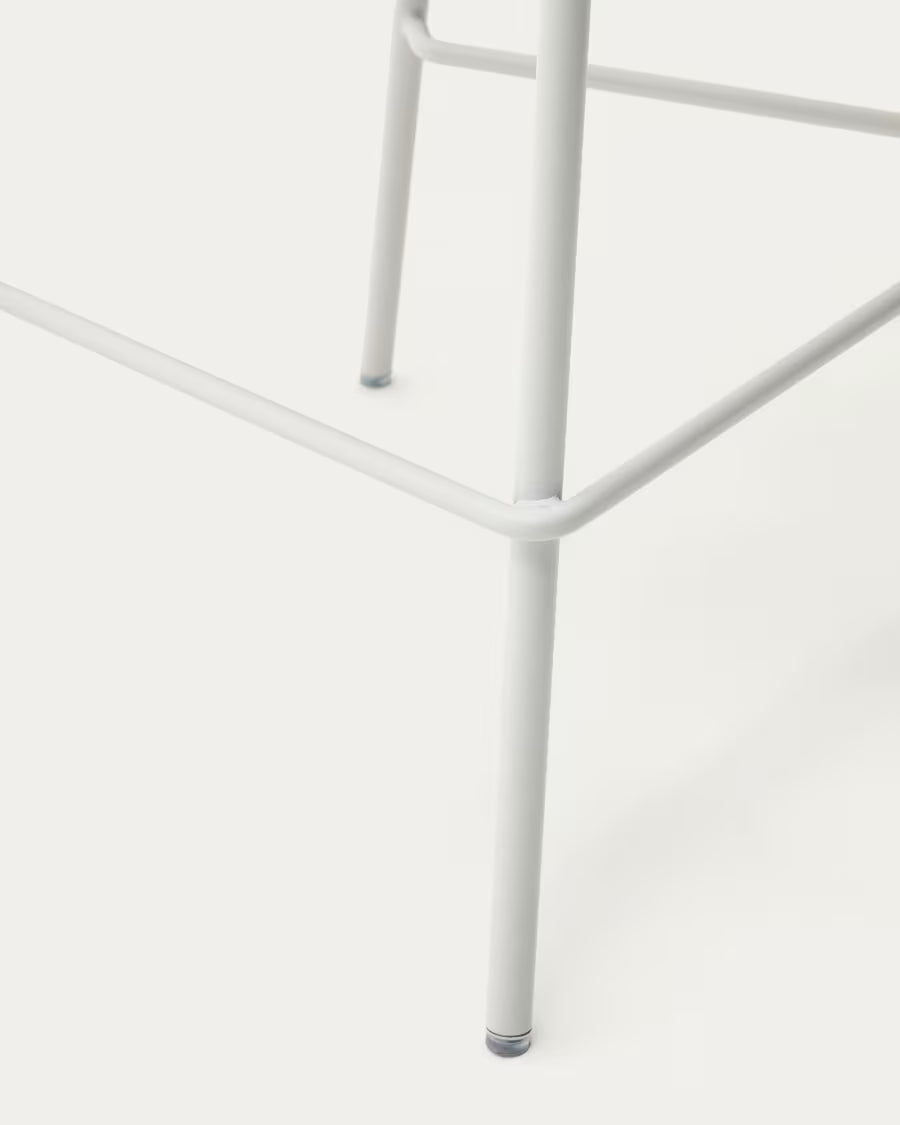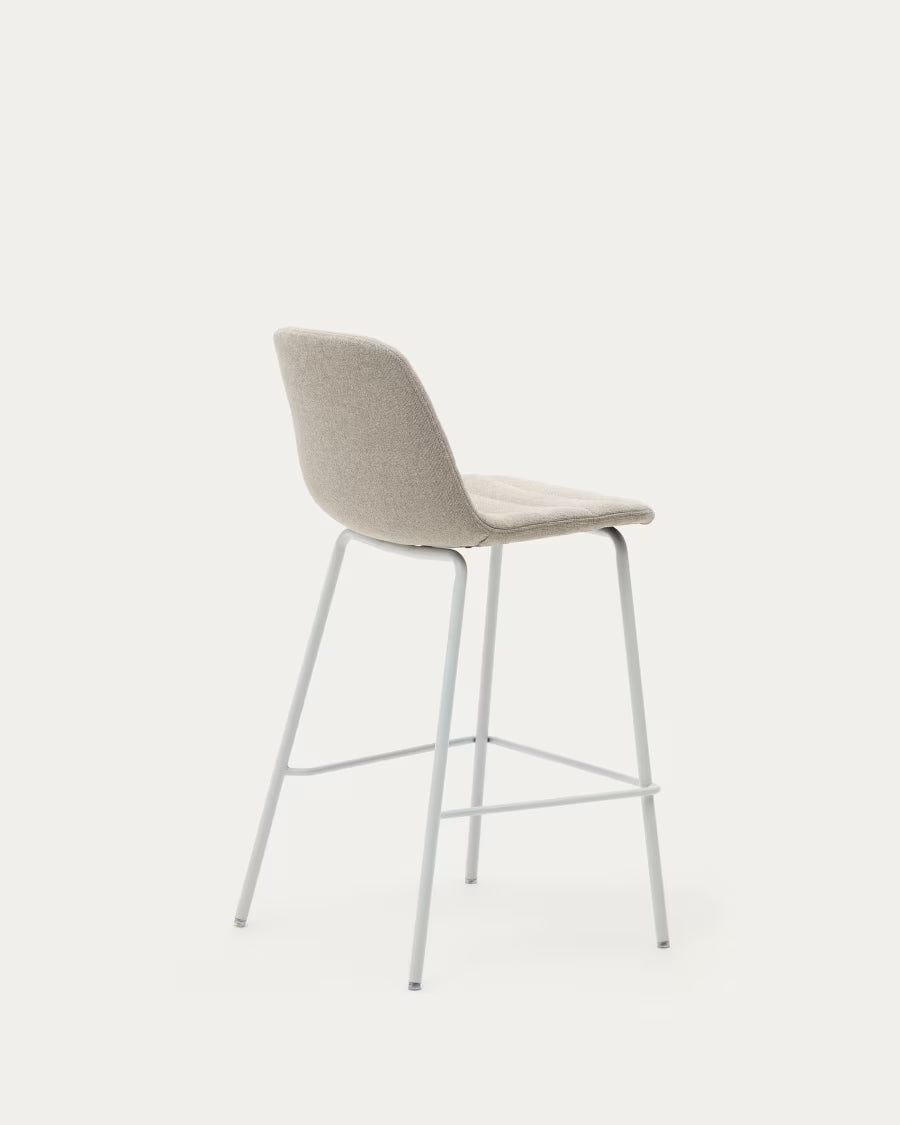 Banco alto Zunilda de chenille bege e aço com acabamento branco mate altura 65 cm FSC 100%