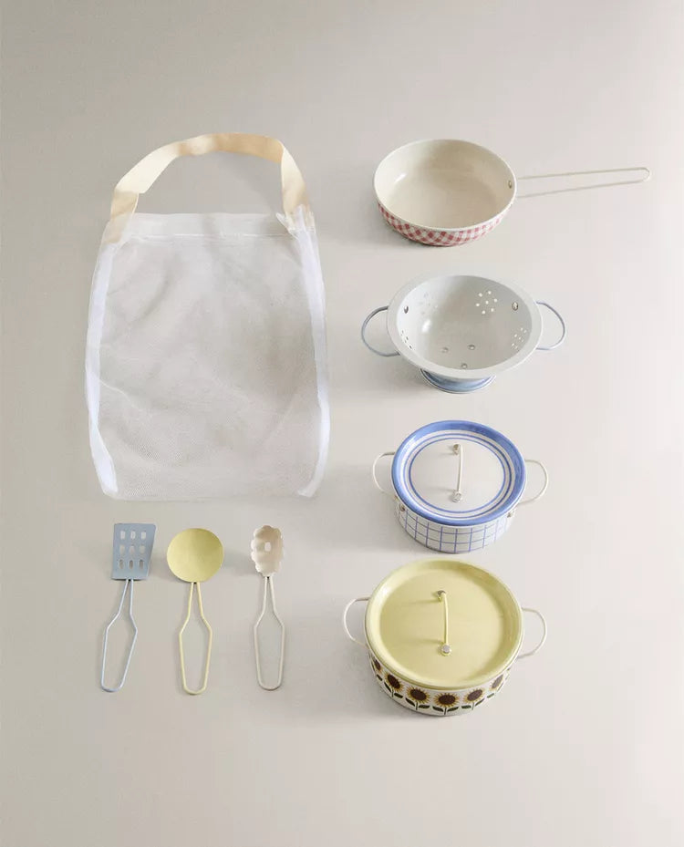 Conjunto de brinquedos infantis com utensílios para a cozinha com estampados divertidos. Altura Largura Profundidade 30cm 18cm 7cm Read more