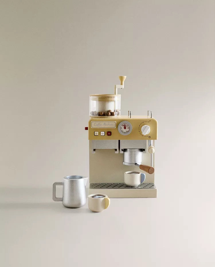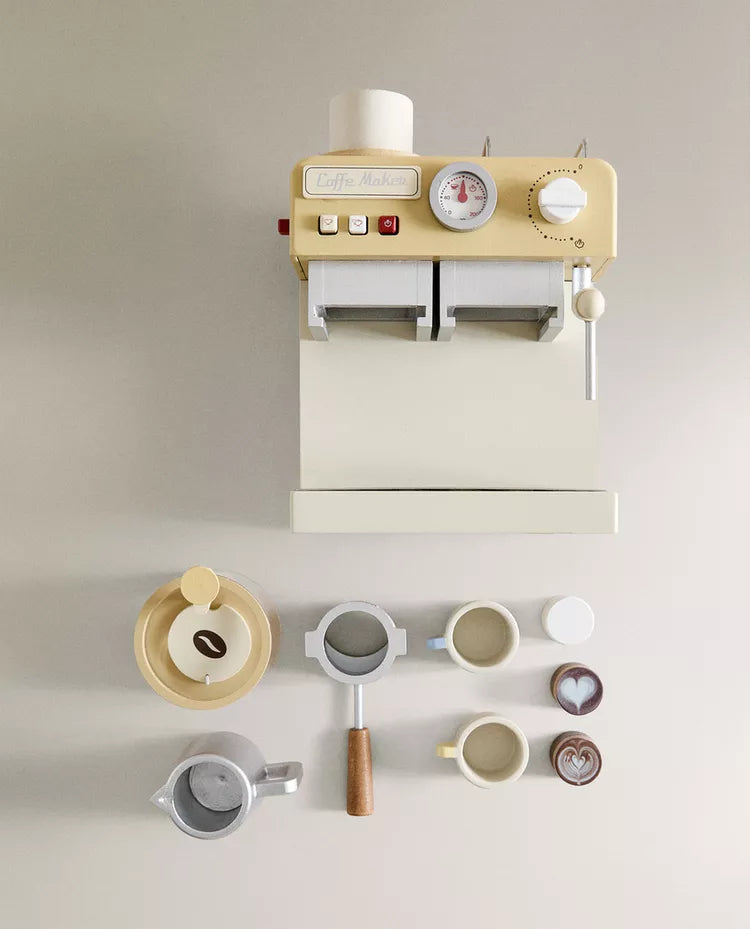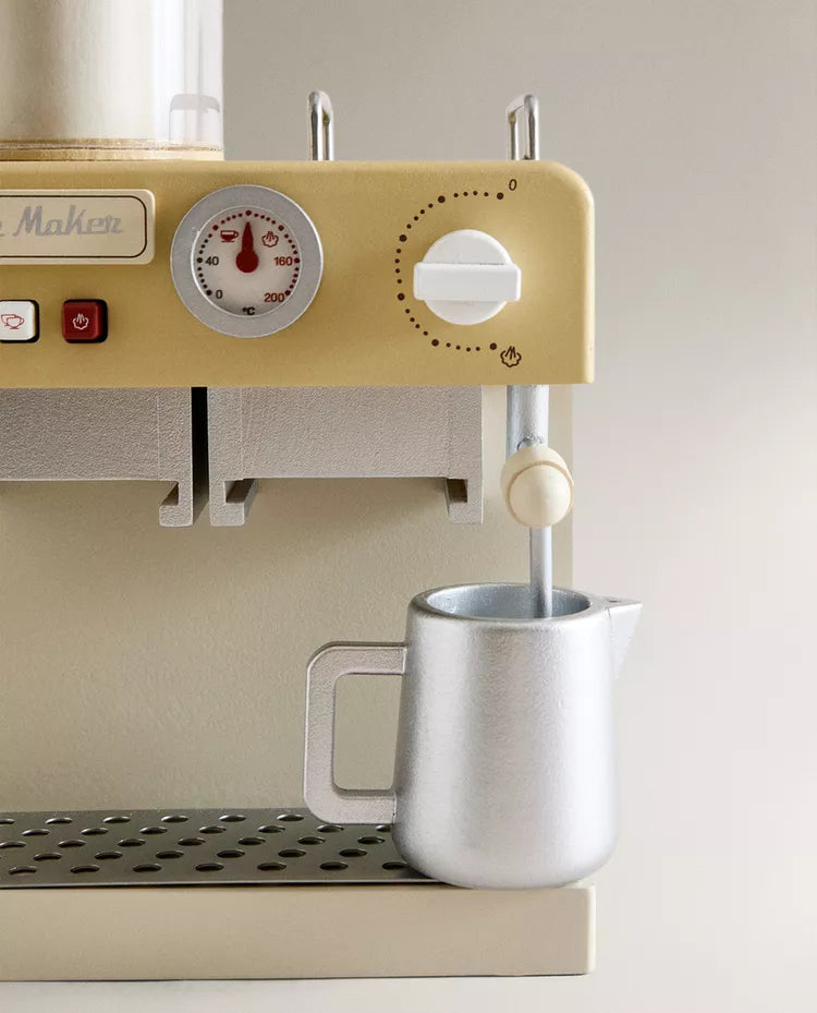 Máquina de café de brincar em madeira com os utensílios necessários para preparar café. Altura Largura Profundidade 33cm 15.5cm 19.5cm... Read more