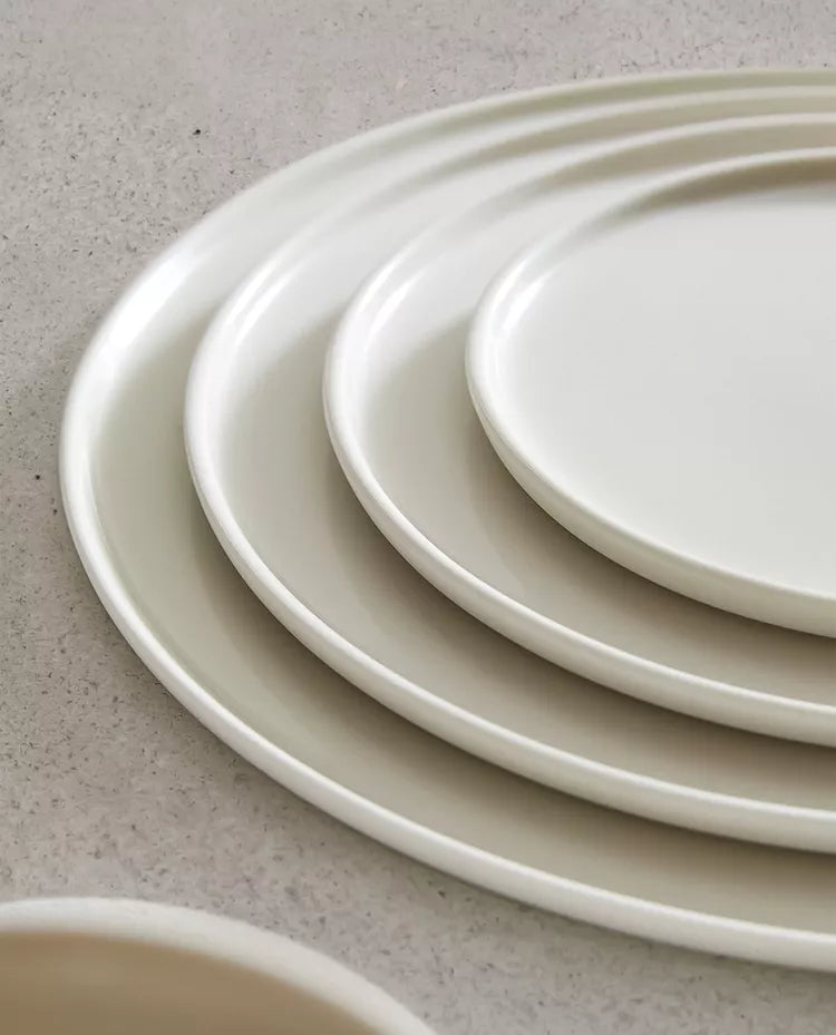 Pratos rasos de porcelana redondos com acabamento duplo: brilho na parte interior e mate na parte exterior.Formas puras, linhas simples... Read more