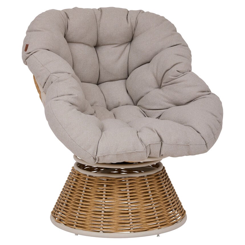 Cadeira rotativa NYMELY com almofadão | 86x76x95,5cm | Rattan sintético | Estrutura com tratamento epóxi antiferrugem | Estrutura com tratamento... Read more