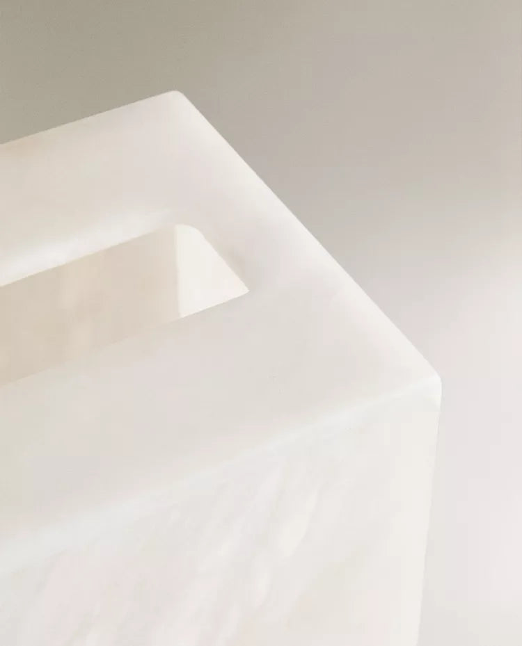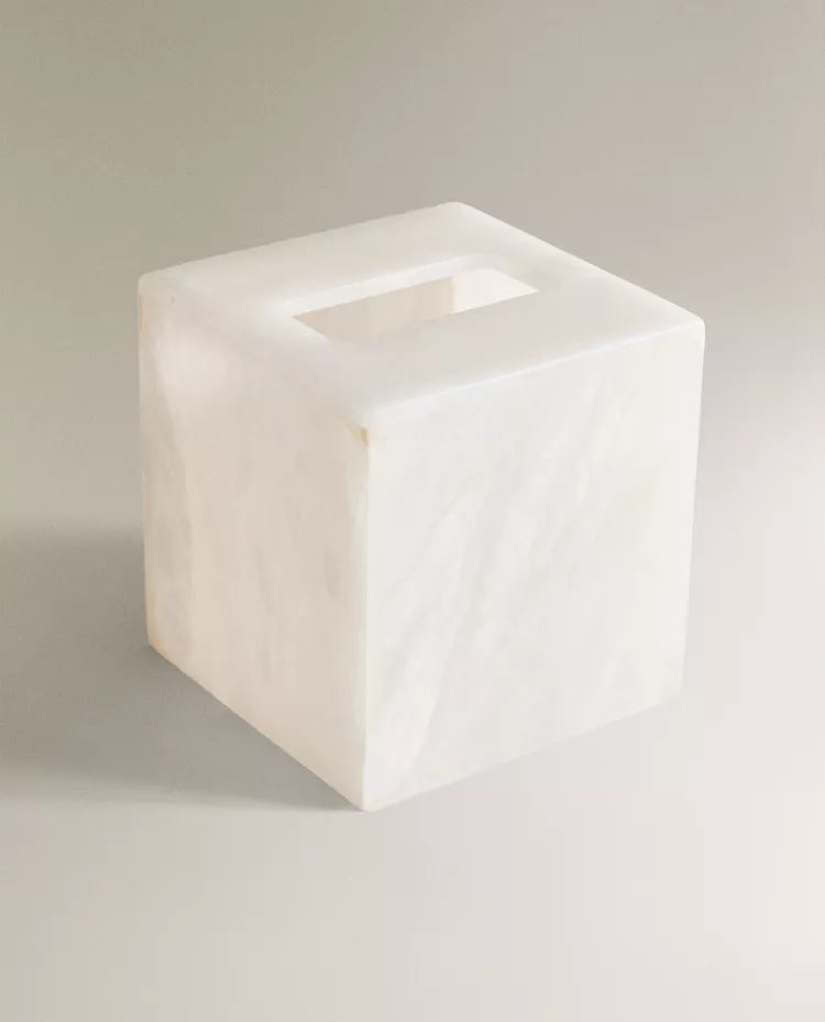 Caixa para lenços quadrada em alabastro com abertura superior. A parte de baixo está aberta para se poder encaixar em... Read more