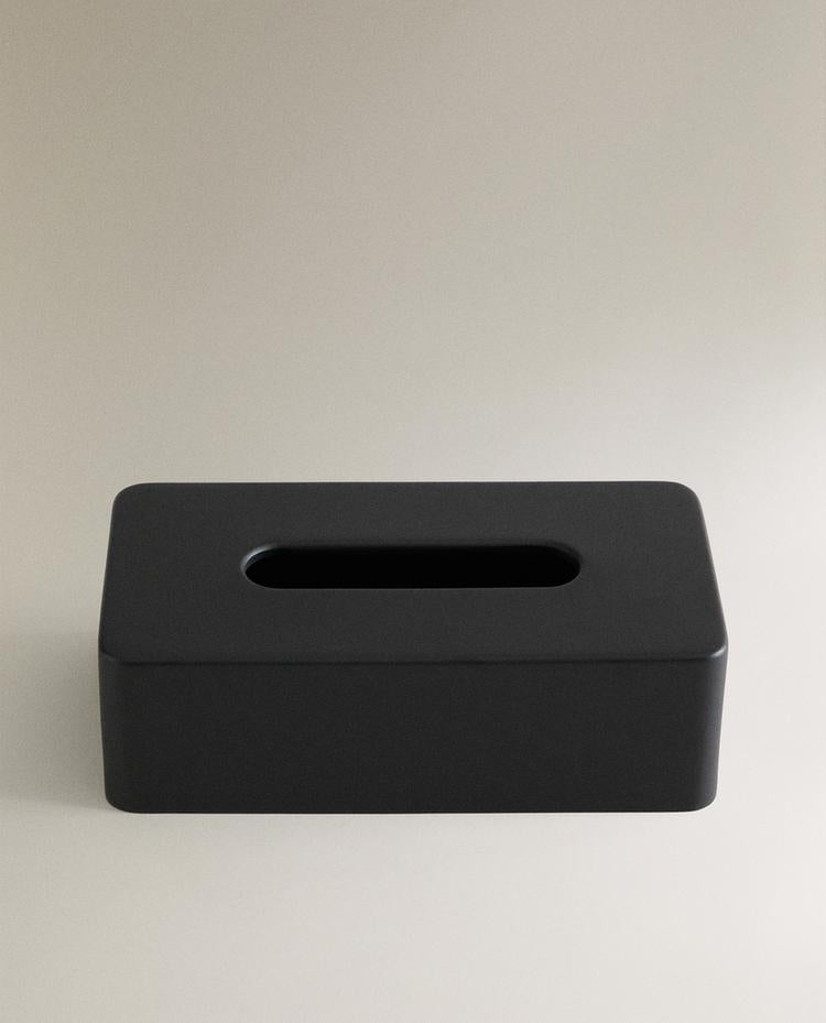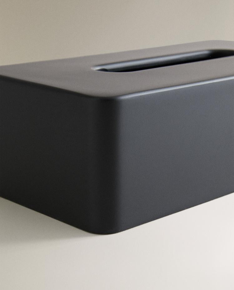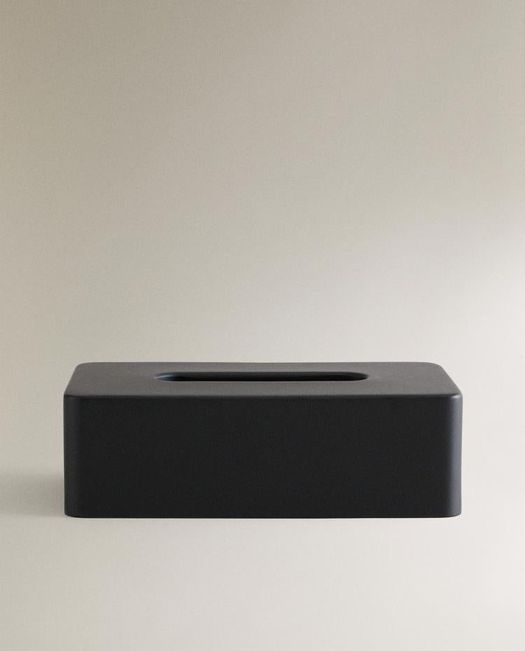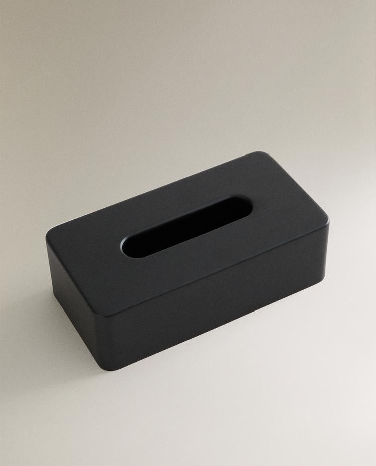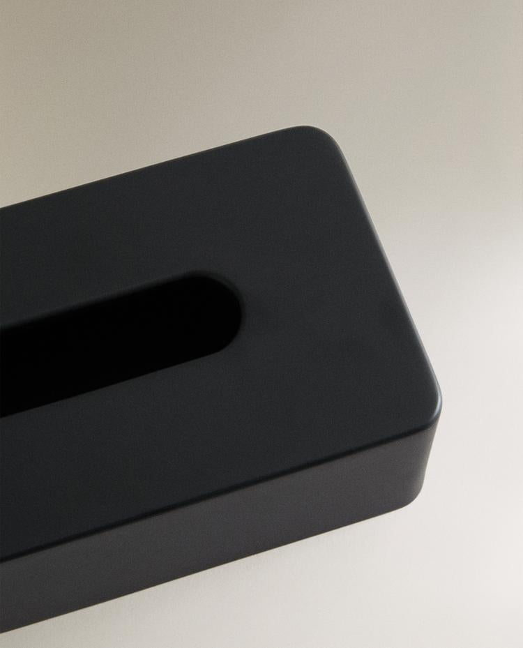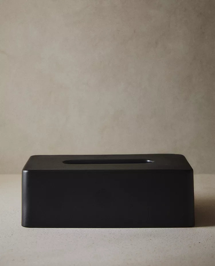 Caixa de lenços de base retangular de resina em preto. Altura Largura Profundidade 8.2cm 13.7cm 26.2cm Read more