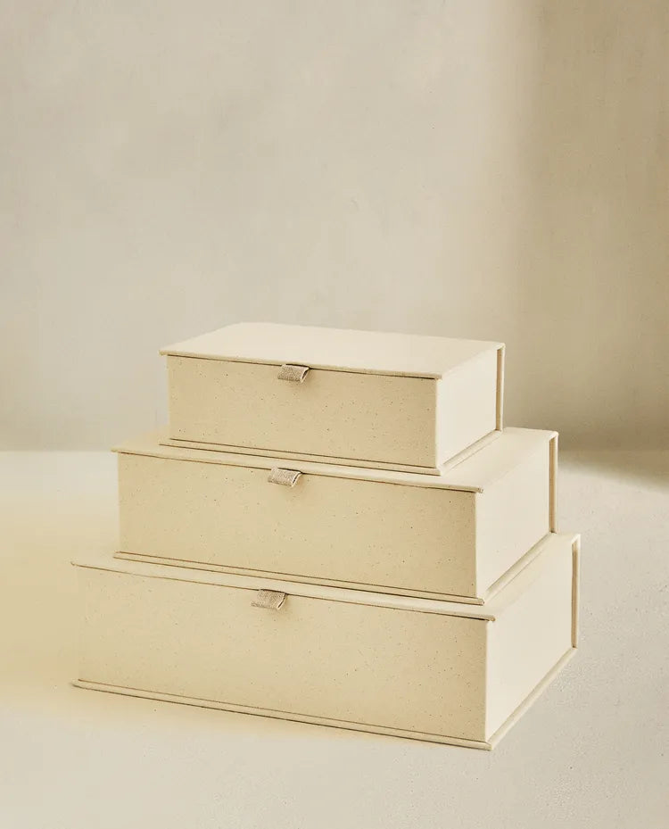 Caixa organizadora semirrígida forrada, com tampa e pormenor de puxador. Altura Largura Profundidade 7cm 24cm 16cm 8.5cm 31cm 21.5cm 10cm... Read more