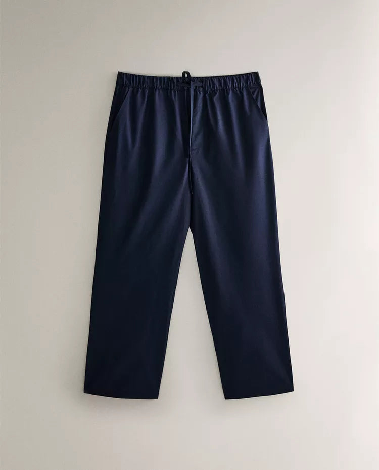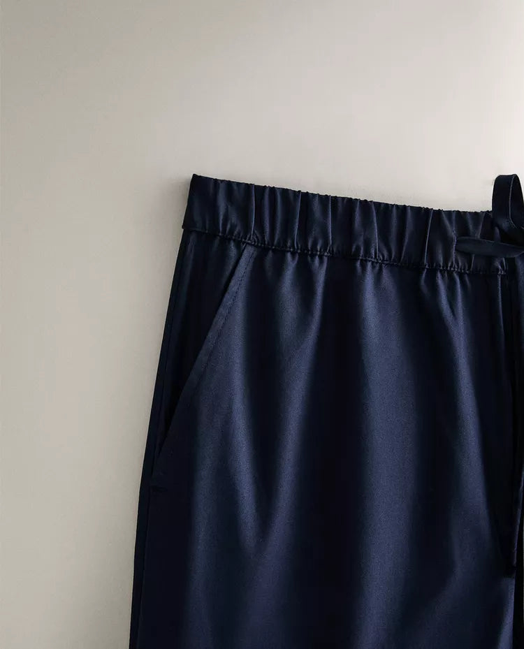 Calças de popelina em cor lisa com laço na cintura para ajustar. Tamanho S Read more