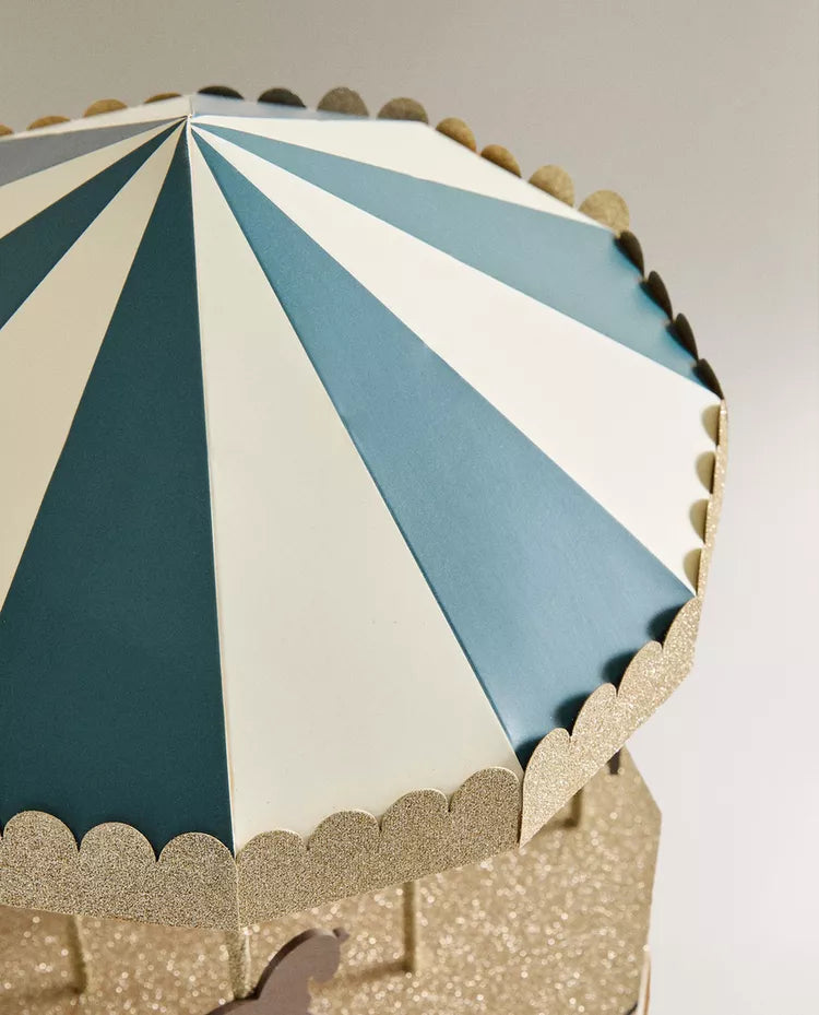 Calendário do advento com forma de carrossel, elaborado em papel. Inclui 24 janelas à volta da base, numeradas, para ir... Read more