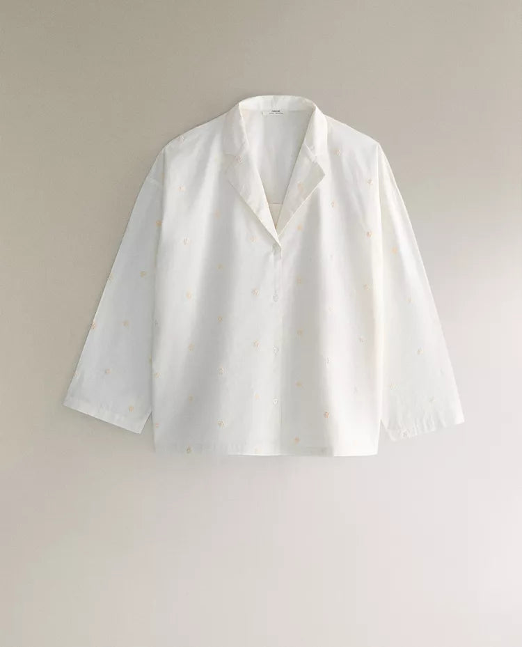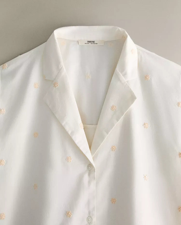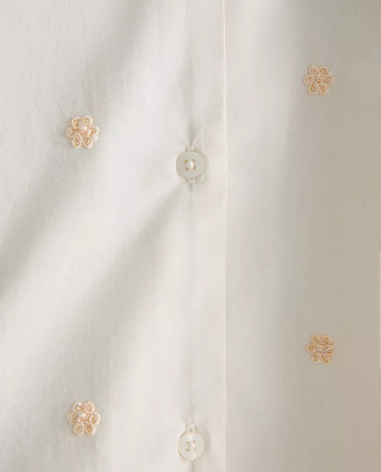 CAMISA DE ALGODÃO COM BORDADOS DE FLOR