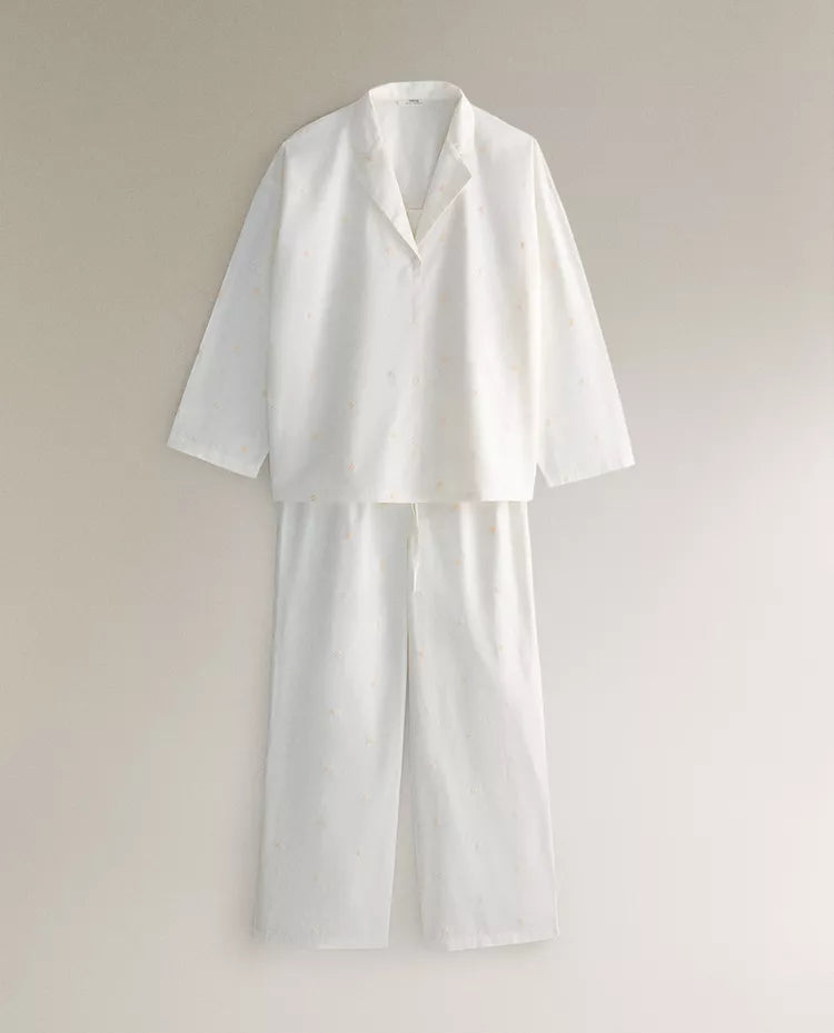 Camisa de manga comprida de algodão em cor lisa com pormenor de flores bordadas, gola de lapela e fecho de... Read more