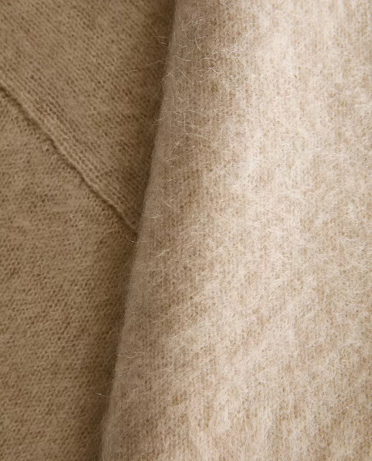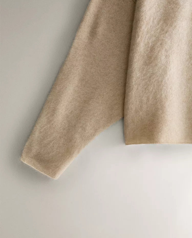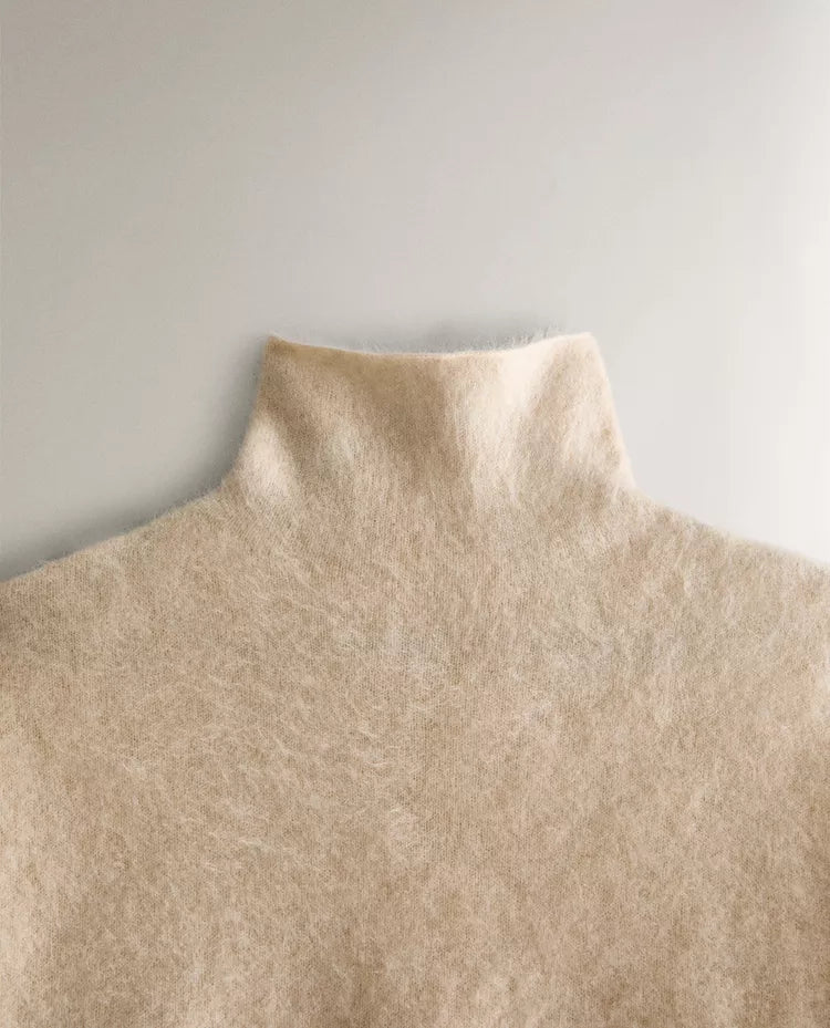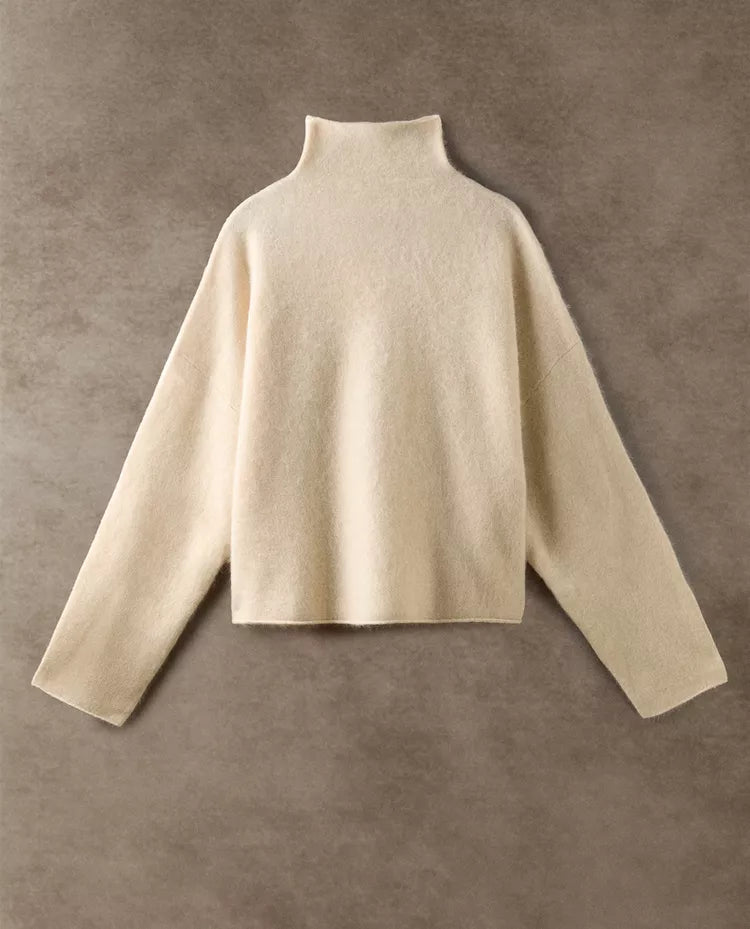 Camisola confecionada com caxemira. Gola alta e manga comprida ligeiramente abalonada. Tamanho S-M M-L Read more