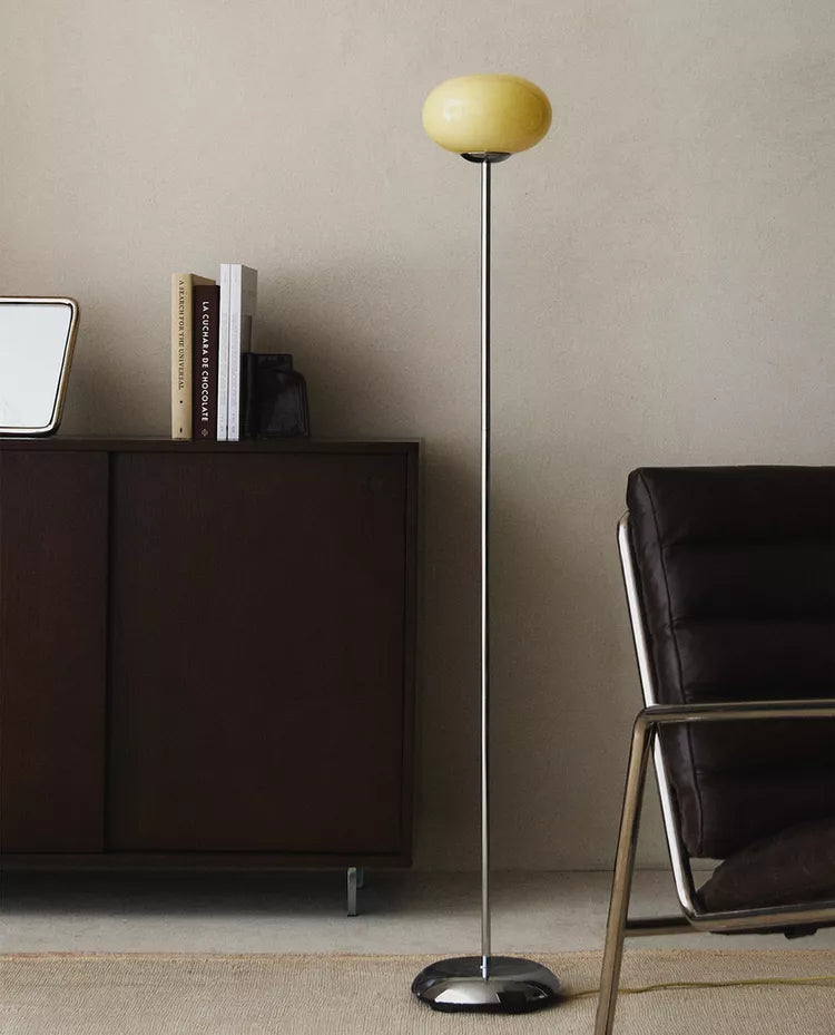 CANDEEIRO DE CHÃO VIDRO E METAL