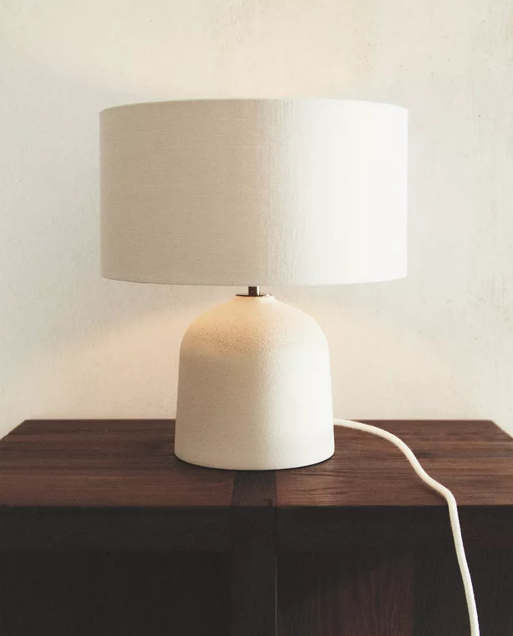 Candeeiro com base de cerâmica arredondada e abajur de linho.Se o cabo exterior ou o cordão do candeeiro sofrer algum... Read more