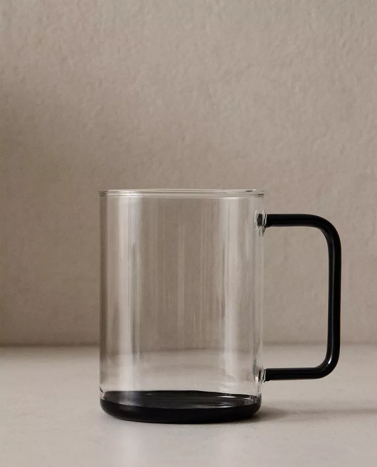 Caneca em borossilicato com design em tons de preto em contraste. Capacidade: 145 ml Altura Largura Profundidade 11.2cm 8cm 11.2cm Read more
