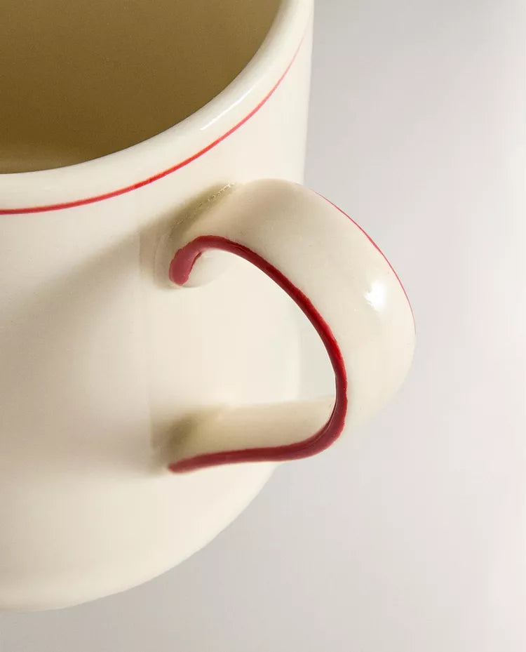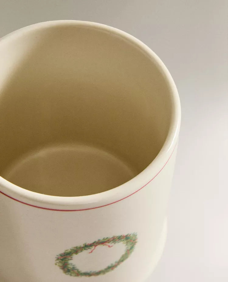 Caneca elaborada em grés com design central de Natal e fio numa cor em contraste. Capacidade: 390 ml Altura Largura Profundidade... Read more