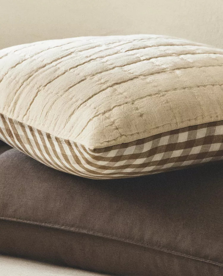 Capa de almofada de edredão com design de quadrados vichy. Confecionada em algodão e linho.Não inclui enchimento. Tamanho 50 x... Read more