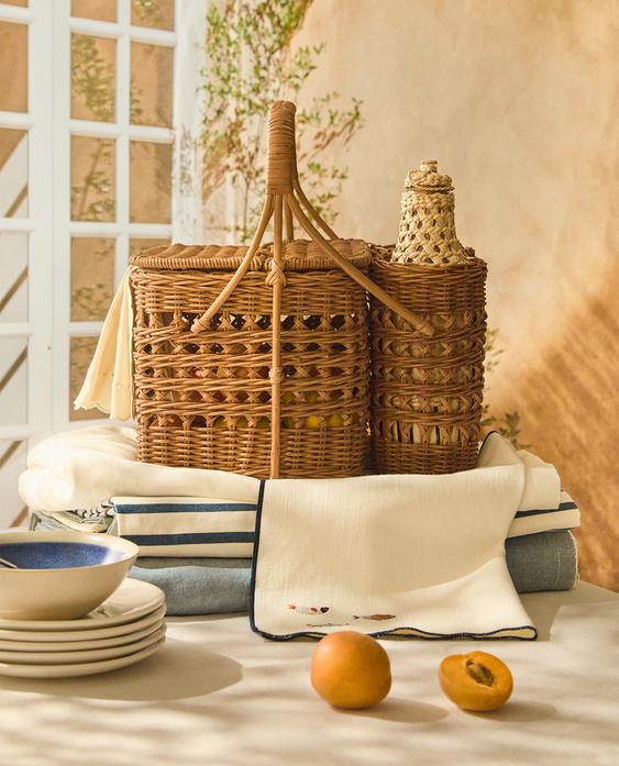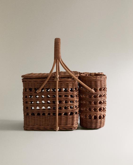 CESTO DE PIQUENIQUE RATÃ 39,99 € REF. 7268/049 Cesto de piquenique confecionado em ratã com tampa e dois porta-garrafas. Altura Largura... Read more