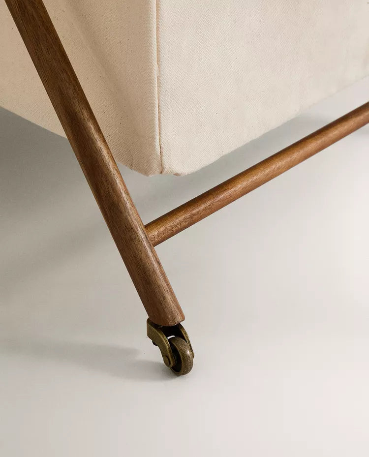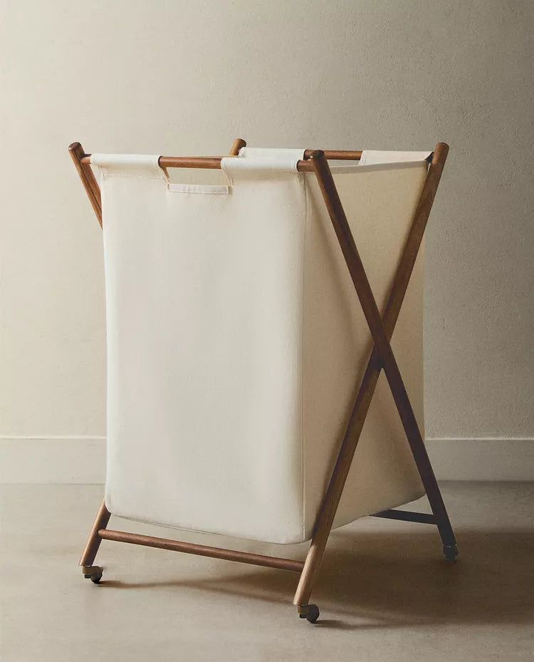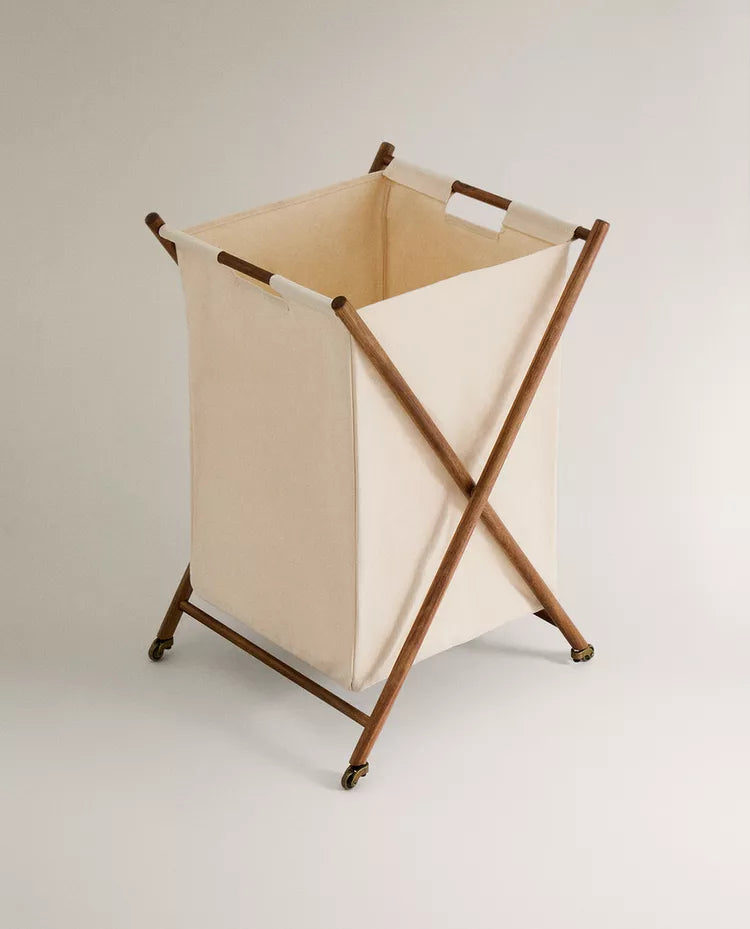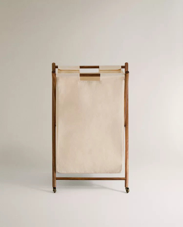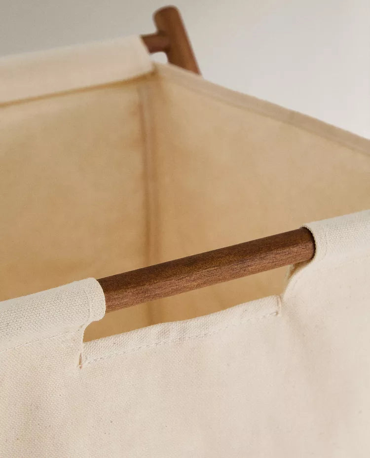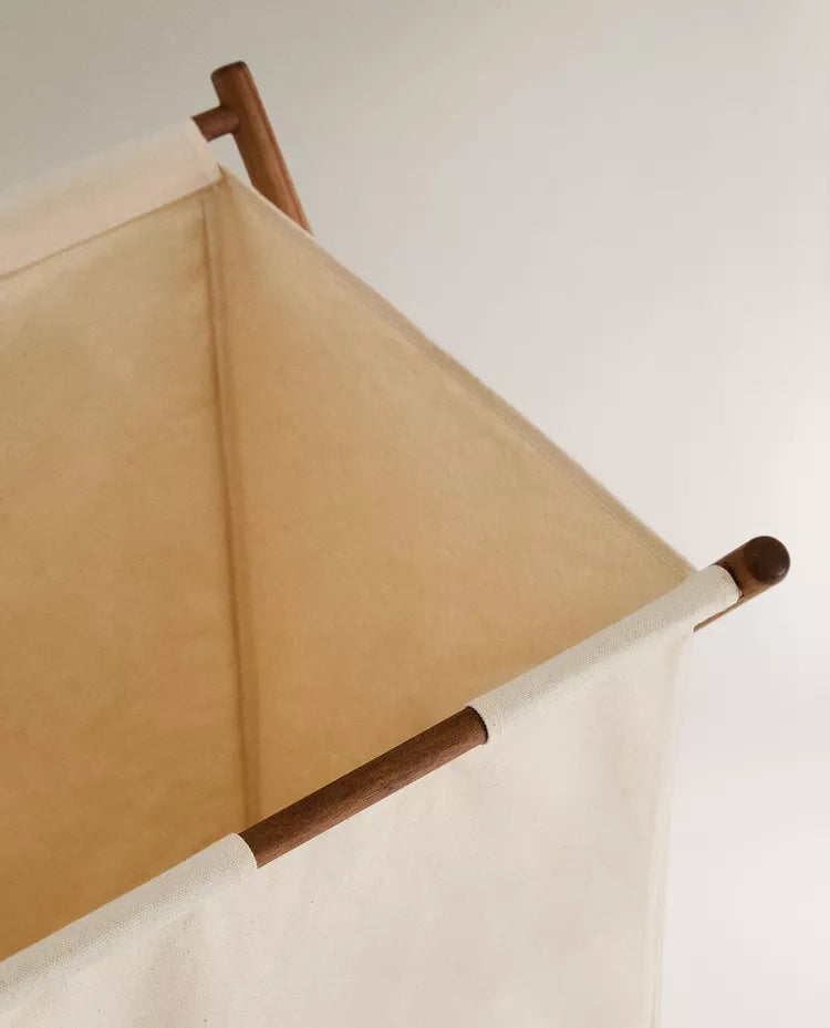 Cesto para a roupa com estrutura de madeira. Tem rodas para a sua deslocação. Altura Largura Profundidade 65cm 44cm 44cm... Read more