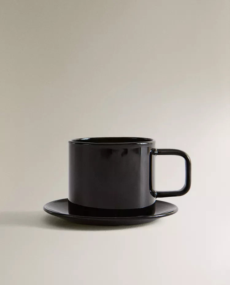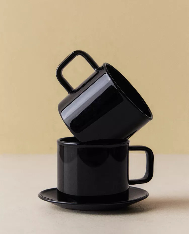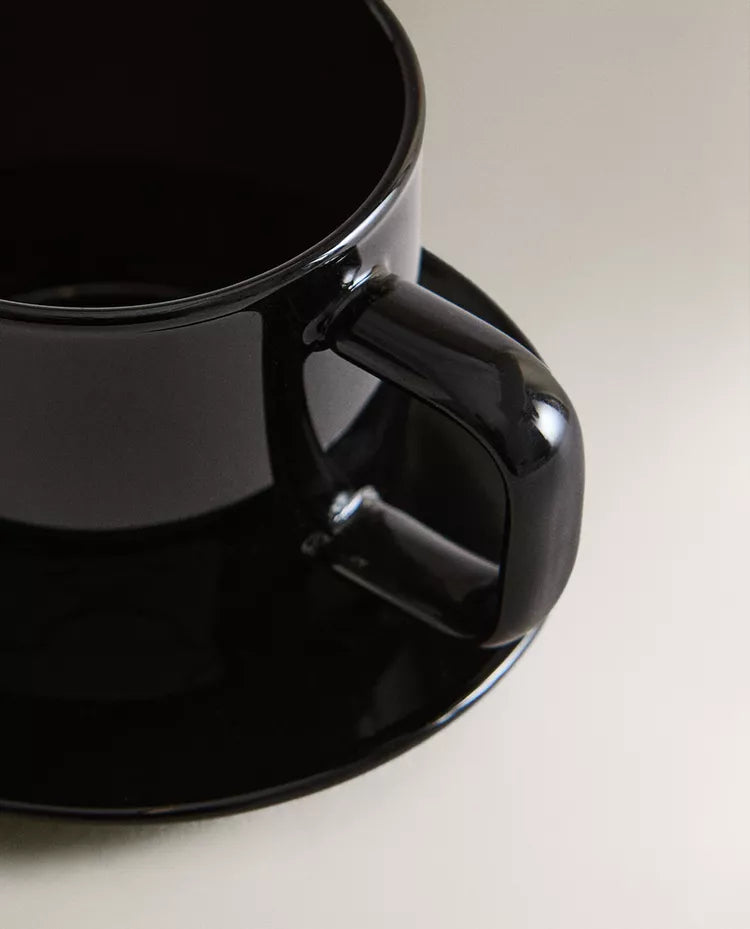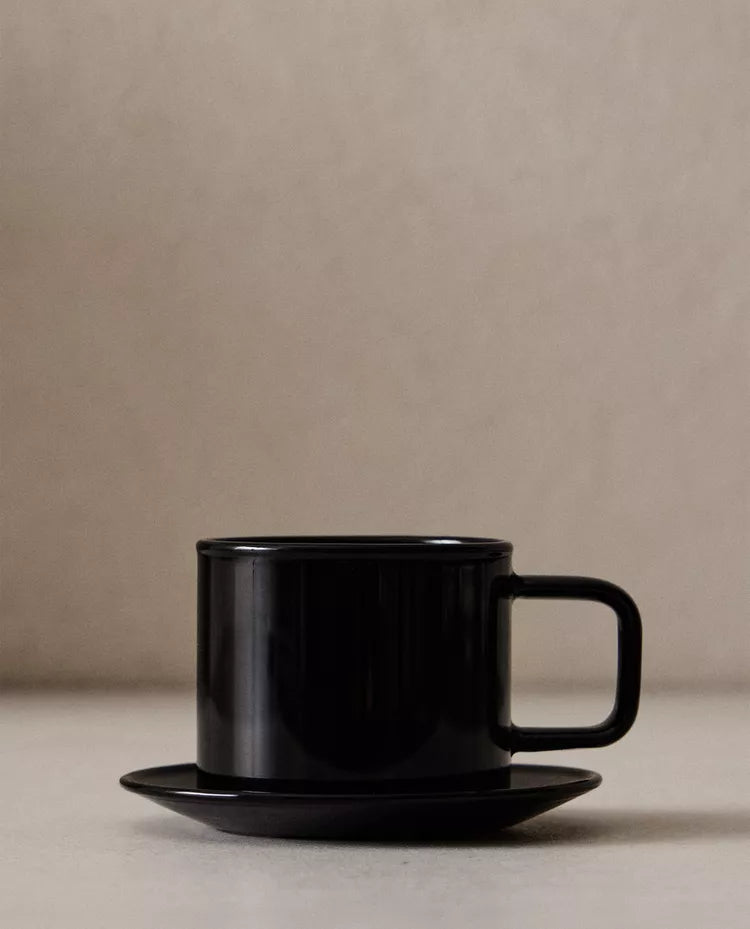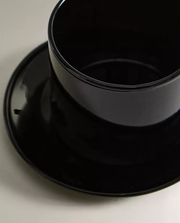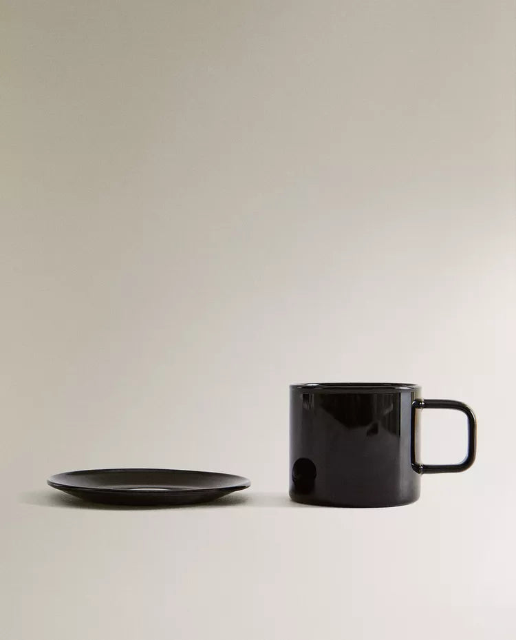 Chávena com prato em borossilicato com design liso. Capacidade: 70 ml Altura Largura Profundidade 5cm 5.8cm 5cm Read more