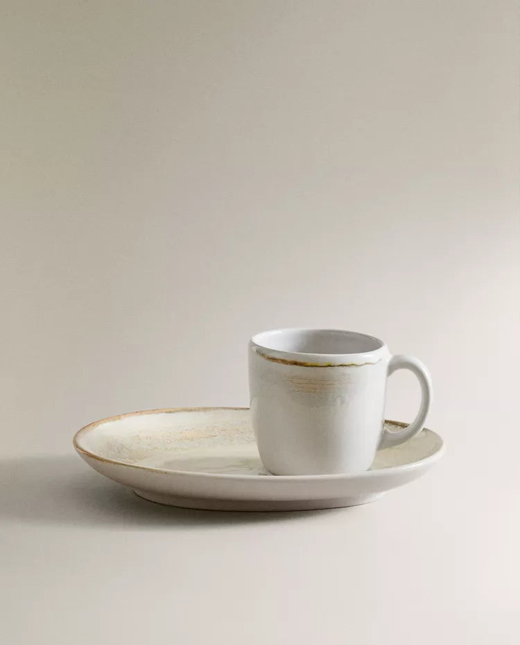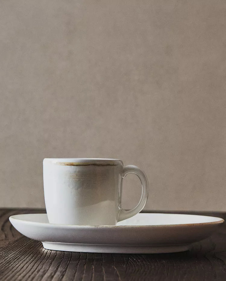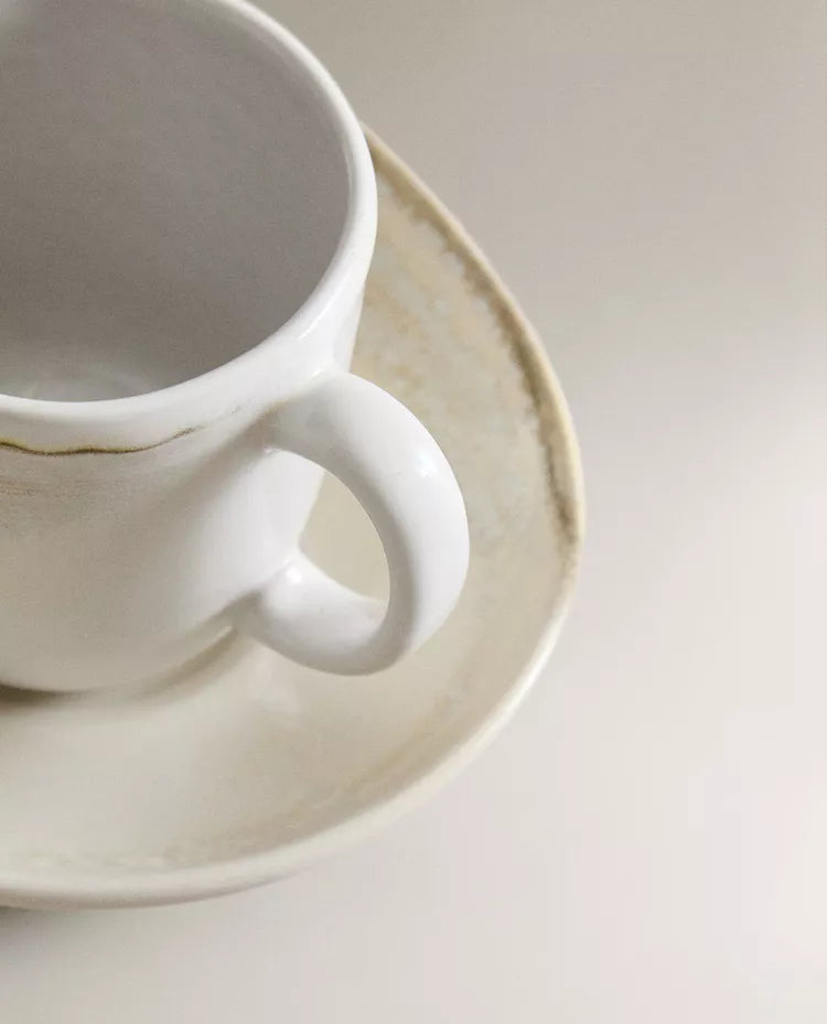 Chávena de café com prato, fabricado em grés em tons cru. Capacidade: 240 ml Altura Largura Profundidade 8cm 16cm 21cm Read more