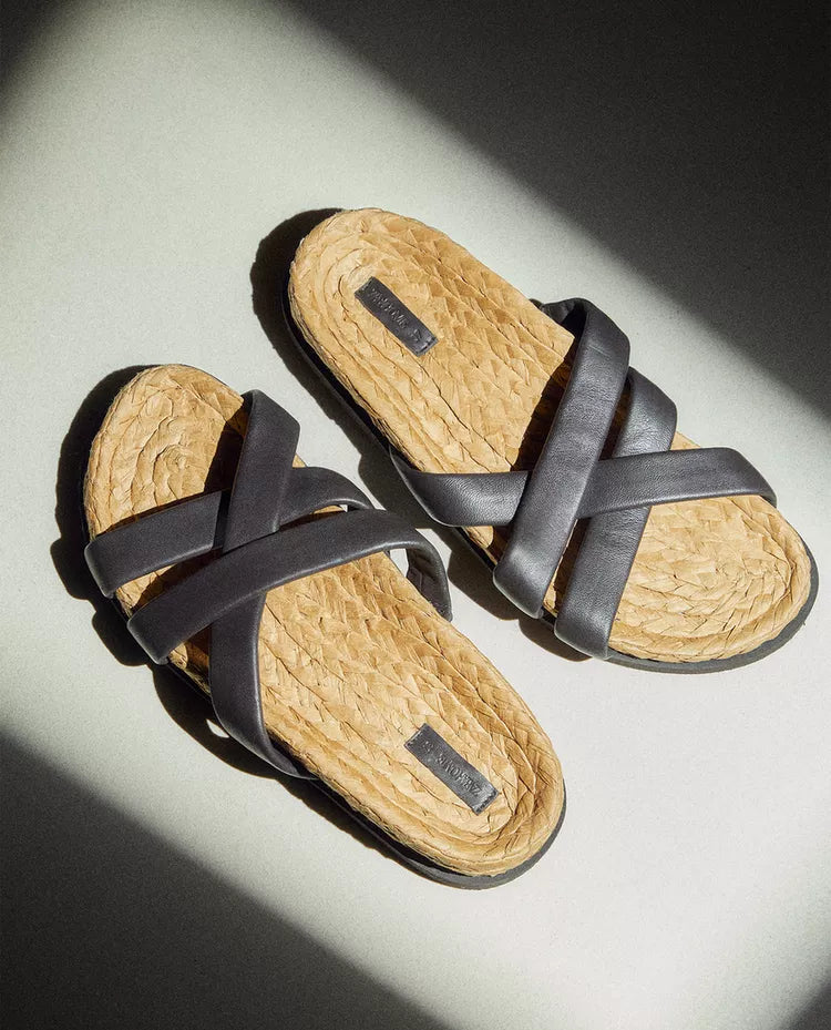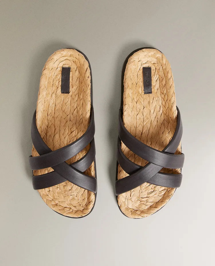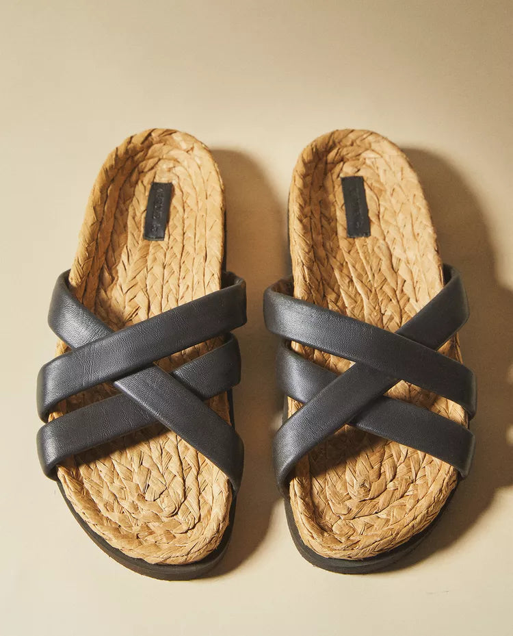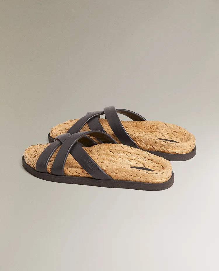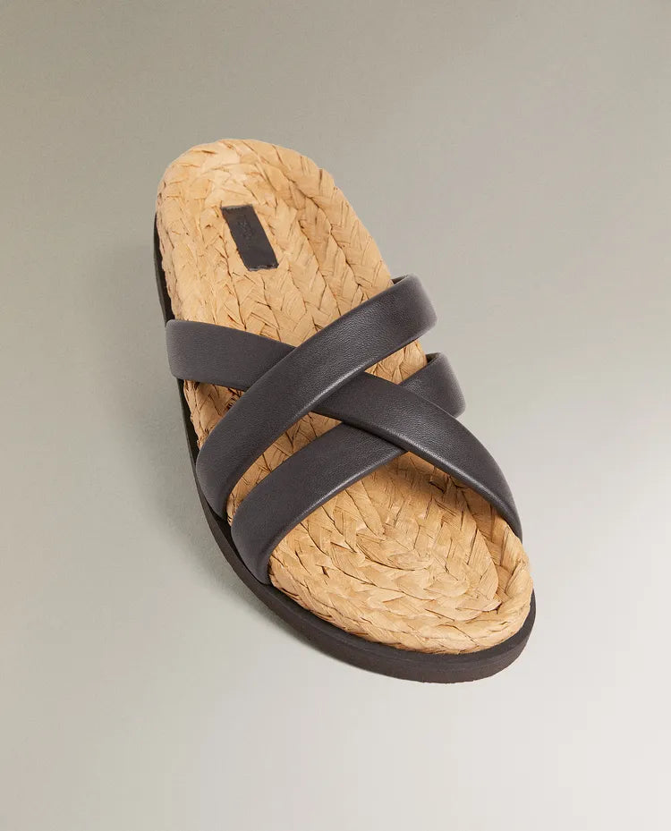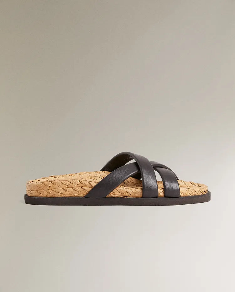 Chinelo raso de pele com tiras cruzadas na gáspea em castanho. Acabamento em ponta redonda e pormenor de sola de... Read more