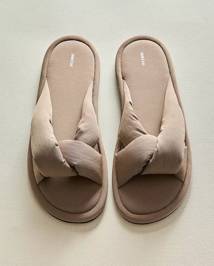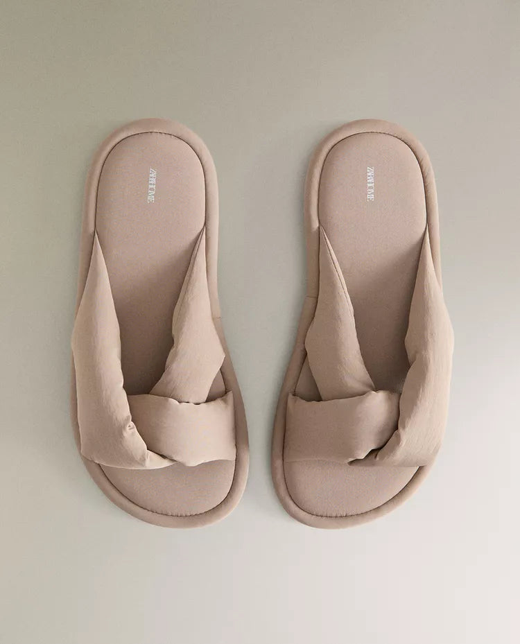 Chinelo de andar por casa tipo mules. Pormenor de tiras cruzadas no nó. Tamanho 36 37 38 39 40 41... Read more