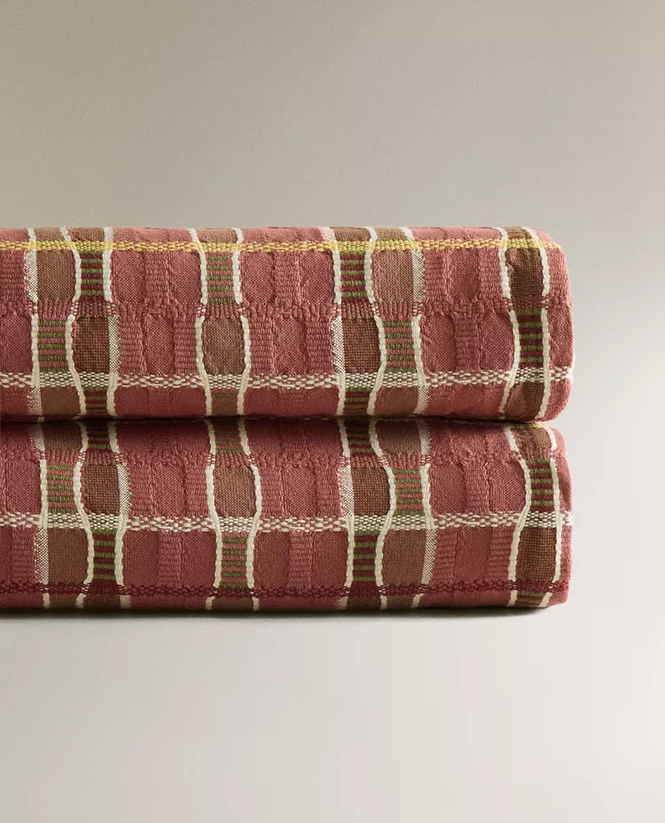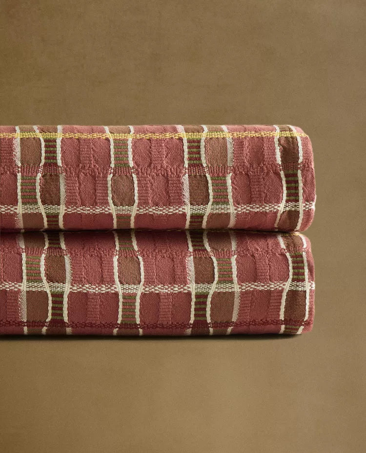 Colcha confecionada em algodão com textura e design de riscas irregulares multicoloridas. Tamanho Cama 135/140/150/160 cm(230 x 250 cm) Read more
