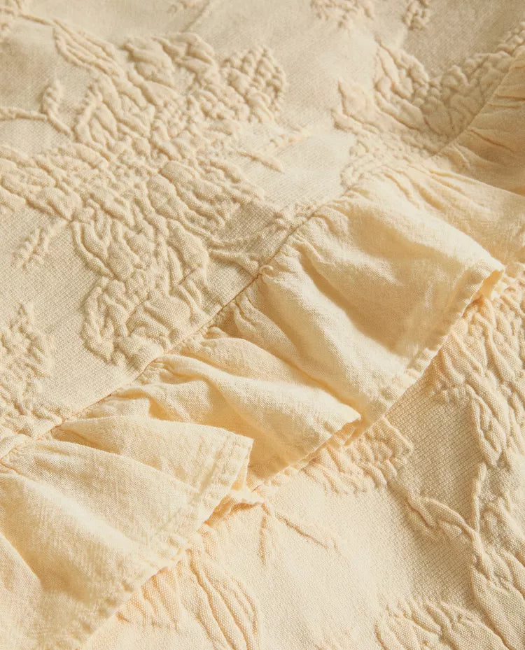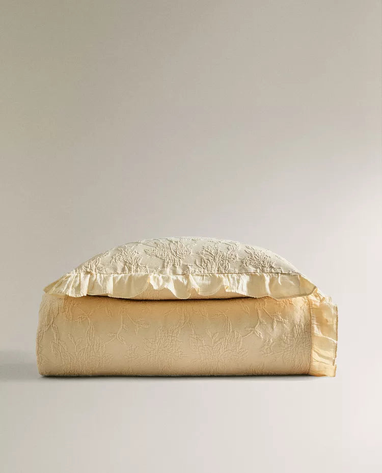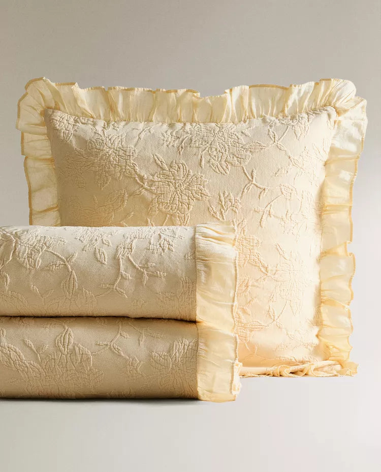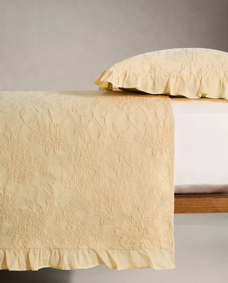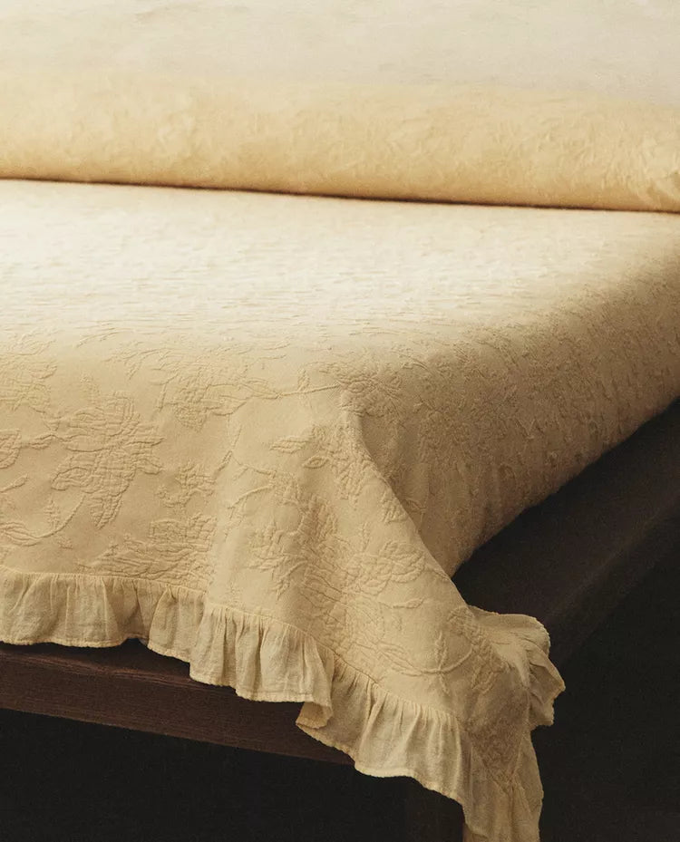 Colcha de algodão em jacquard com desenho de rosas e folho nas bordas. Tamanho Cama 135/140/150/160 cm(230 x 250 cm)... Read more