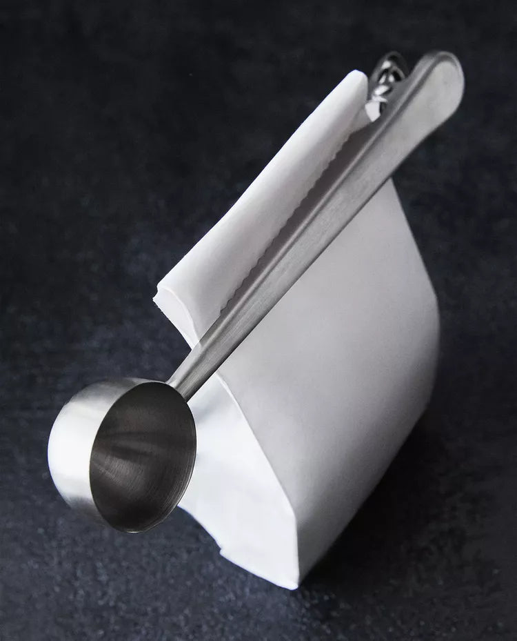 Colher para café em metal lacado com mola no cabo para manter o pacote de café fechado. Altura Largura Profundidade... Read more