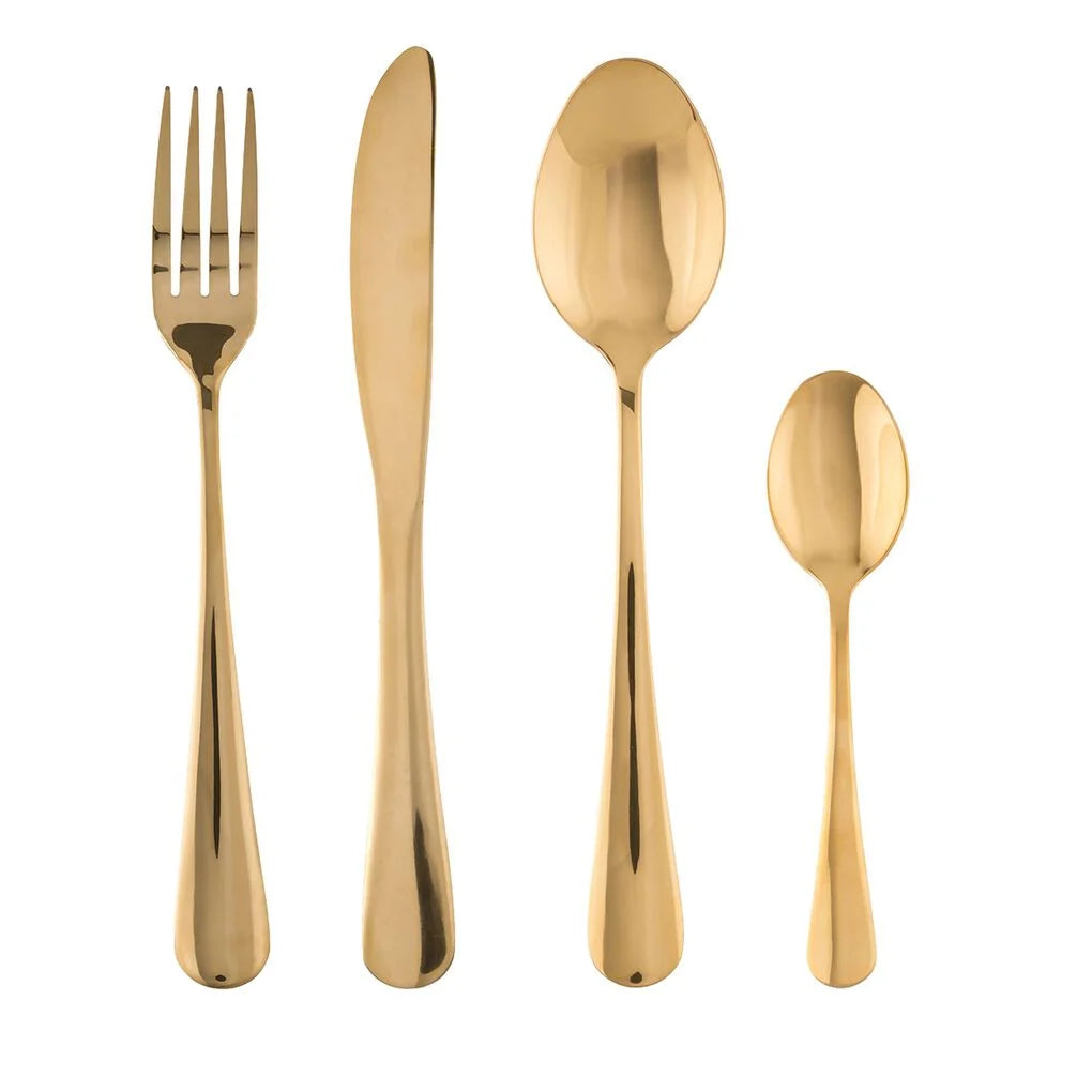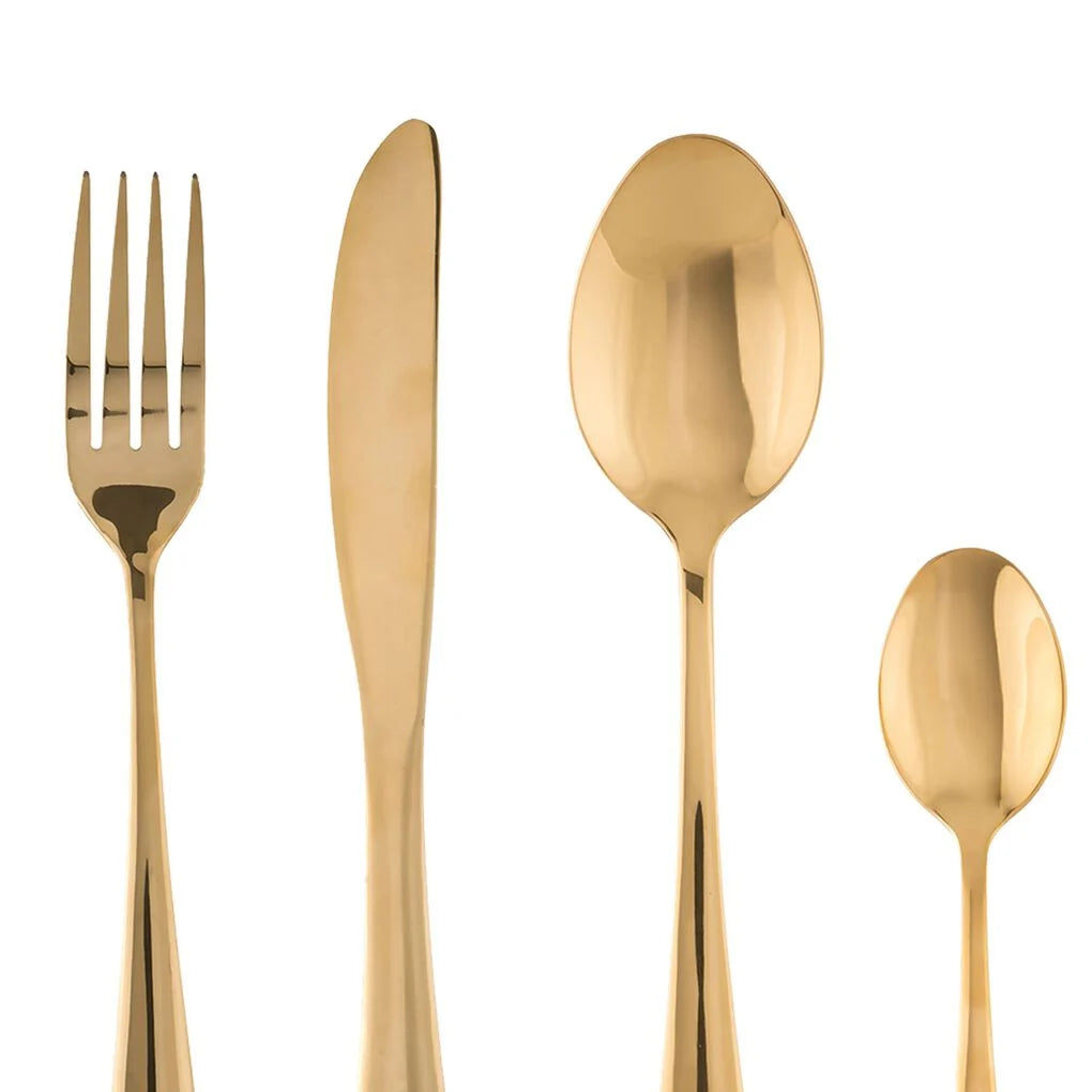 Conjunto De 16 Talheres Dourados | Composto por 4 garfos, 4 facas, 4 colheres de sopa e 4 colheres de... Read more