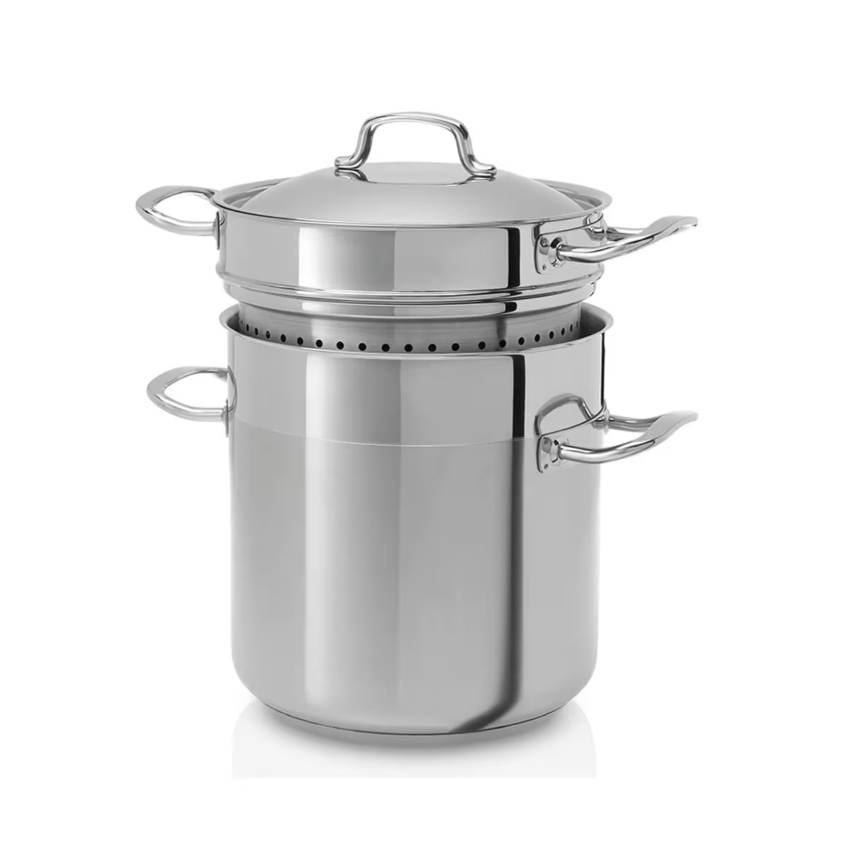 "UTILIZAÇÃO 1. Utilize apenas as fontes de calor recomendadas. 2. Use luvas ou outra proteção para assegurar um manuseamento seguro. 3. O diâmetro da fonte de calor deve ser menor ou igual ao do fundo da peça, para uma maior eficiência energética. Quando cozinhar num fogão a gás, a chama deve tocar apenas no fundo da peça e não nas suas paredes. 4. Use calor médio durante alguns minutos, depois reduza para o mínimo porque o fundo térmico conserva o calor, distribuindo-o de forma uniforme. Retire a peça da fonte de calor alguns minutos antes de terminar o processo de cozedura, o qual se completará com o calor armazenado no fundo. 5. No aquecimento por indução atingem-se temperaturas extremamente elevadas em poucos segundos. O aquecimento do óleo para fritar requer maior precaução e vigilância. Aqueça a peça gradualmente. 6. Recomendamos que siga todas as instruções que acompanham a nossa louça."