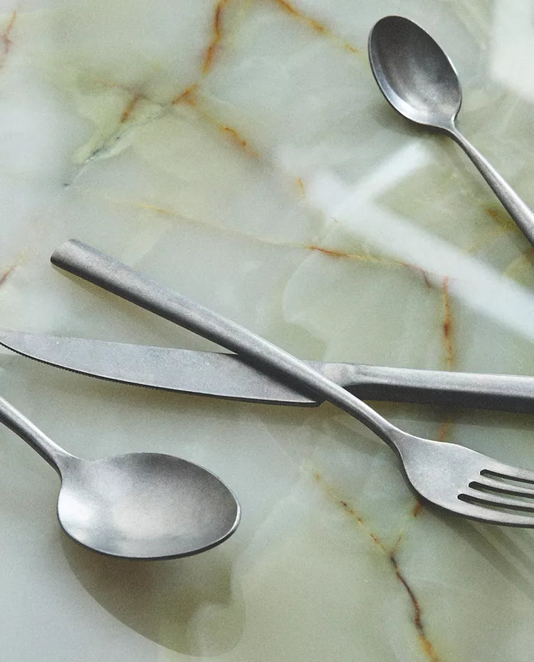Conjunto de talheres de aço inoxidável com acabamento vintage, composto por um garfo, uma faca, uma colher de terrina e... Read more