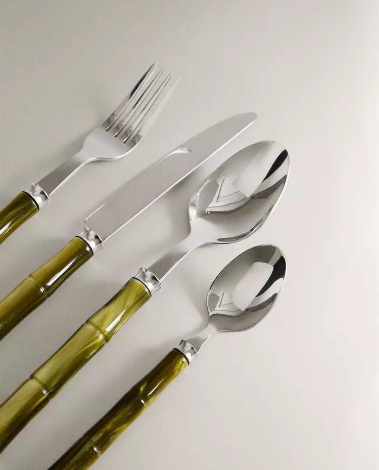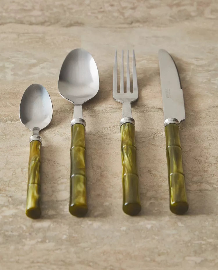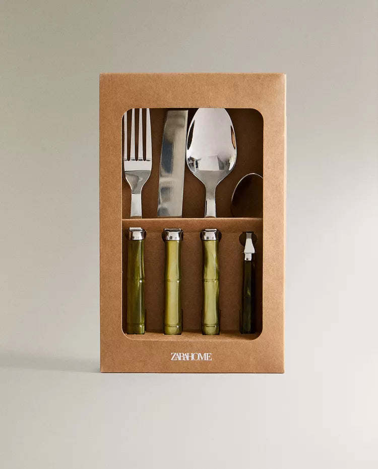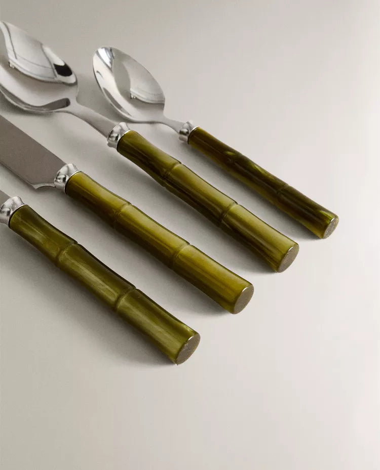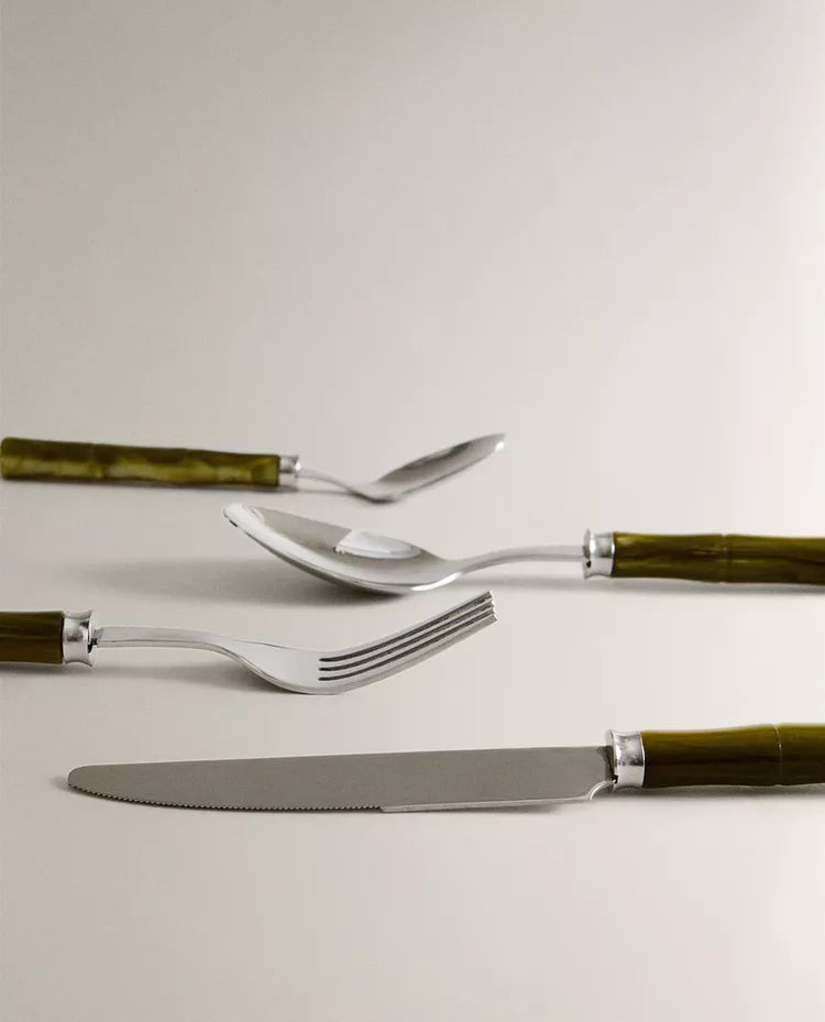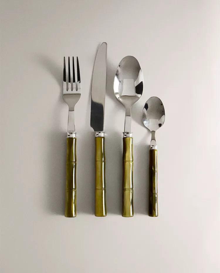 CONJUNTO DE TALHERES 4 PEÇAS CABO EFEITO BAMBU