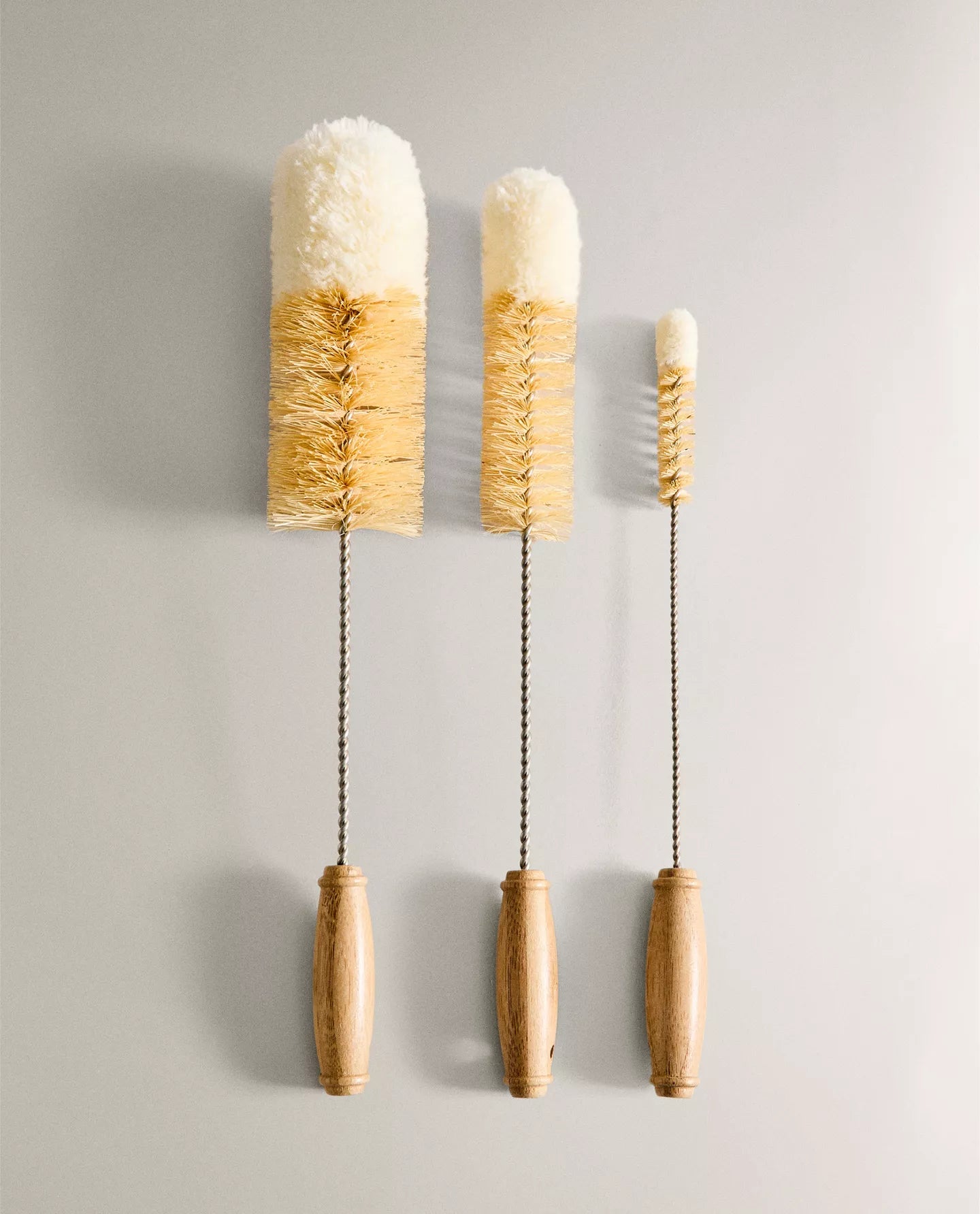 CONJUNTO ESCOVAS PARA GARRAFAS BEGE-CLARO|7223/762 Conjunto de 3 escovas de diferentes tamanhos com cabo de madeira para limpar garrafas. Altura... Read more
