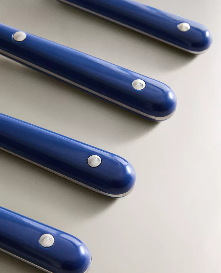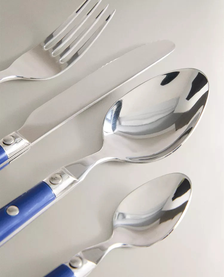 Conjunto de talheres em aço inoxidável com um cabo ergonómico de resina acrílica em azul com acabamento brilhante, decorado com... Read more