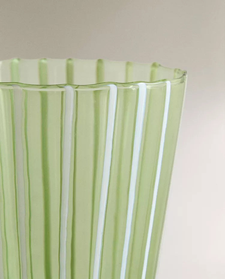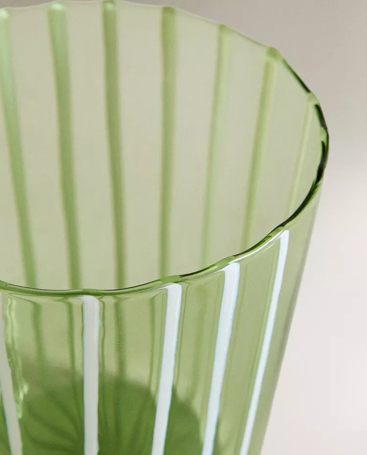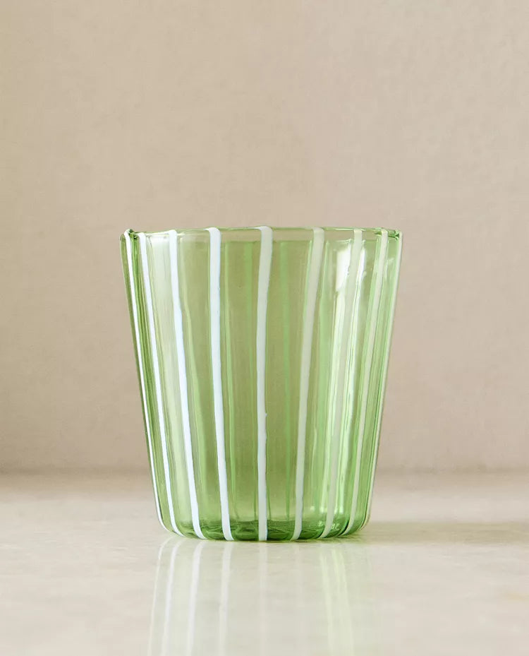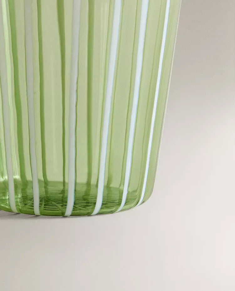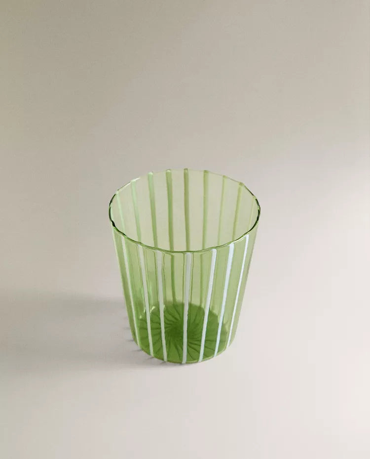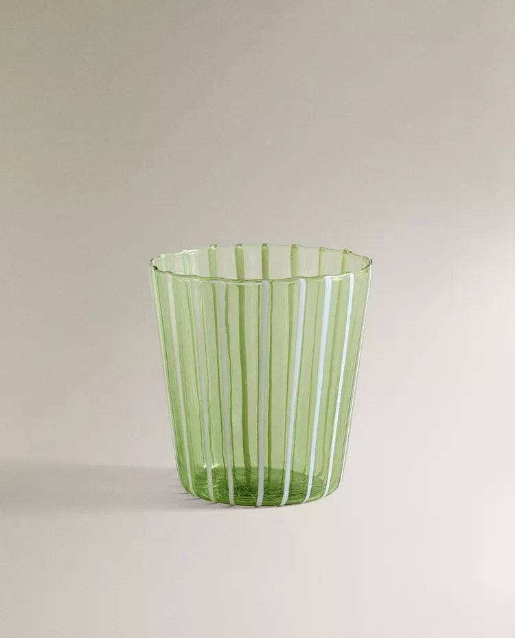 Copo de borossilicato com design de riscas. Capacidade: 360 ml Altura Largura Profundidade 8.5cm 9cm 8.5c Read more
