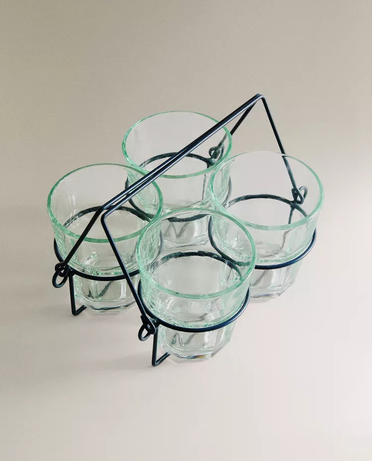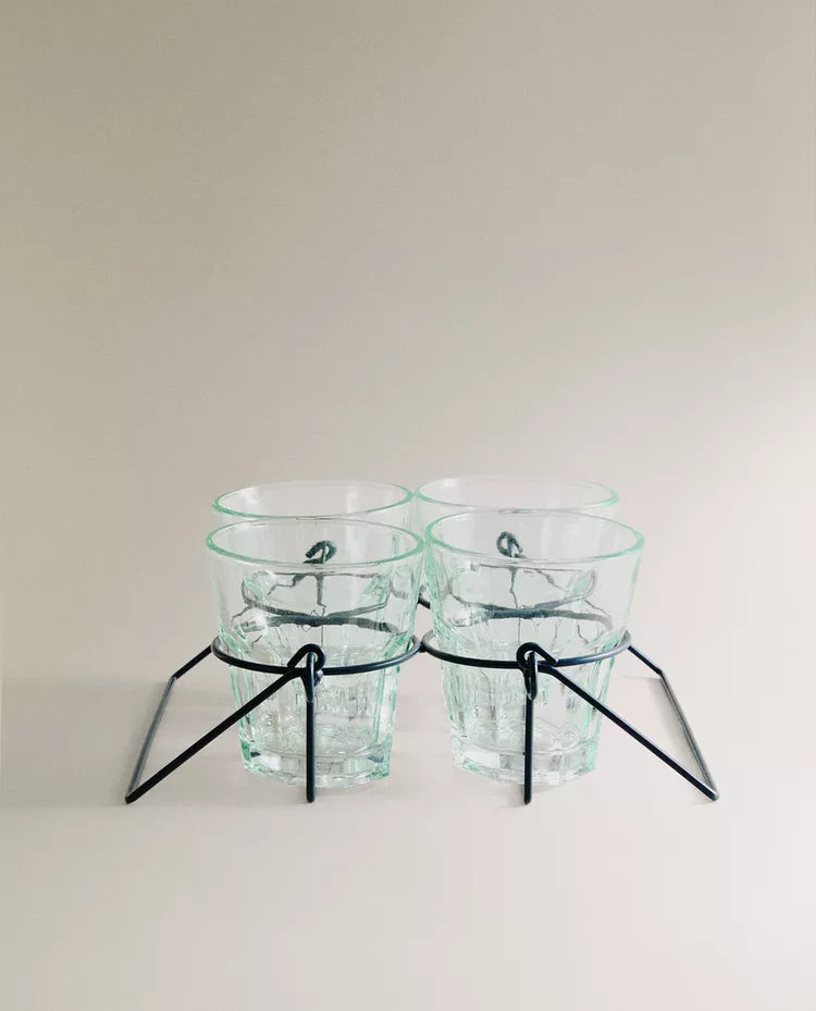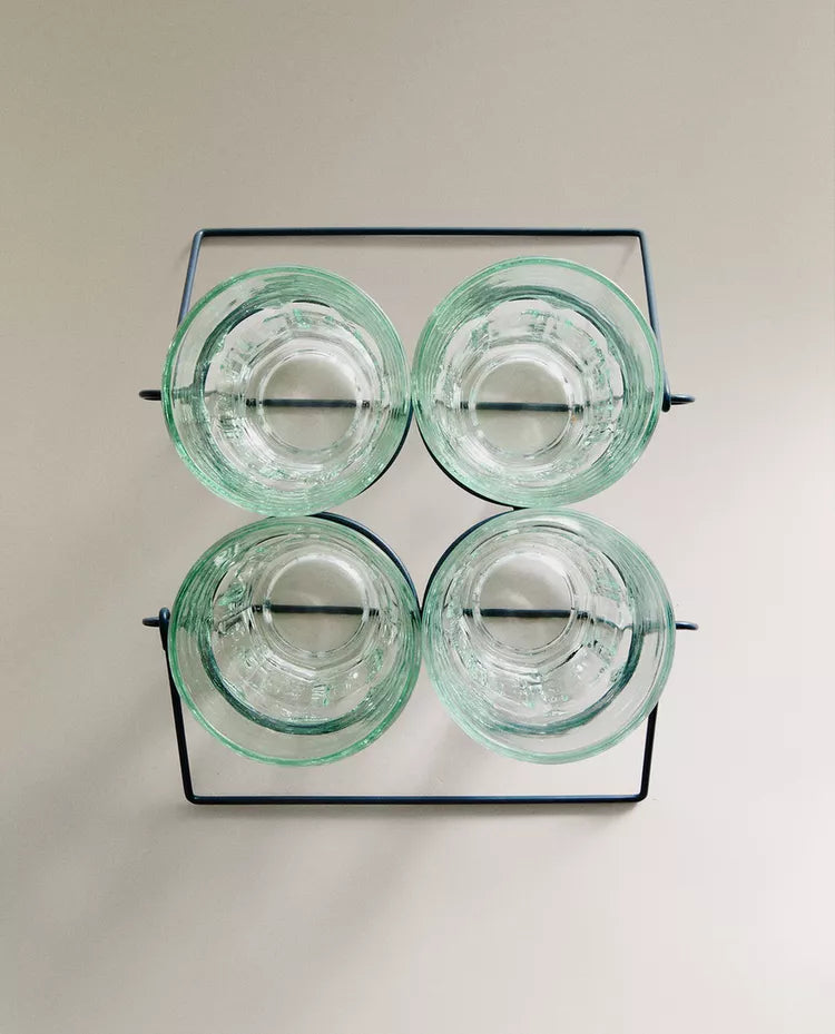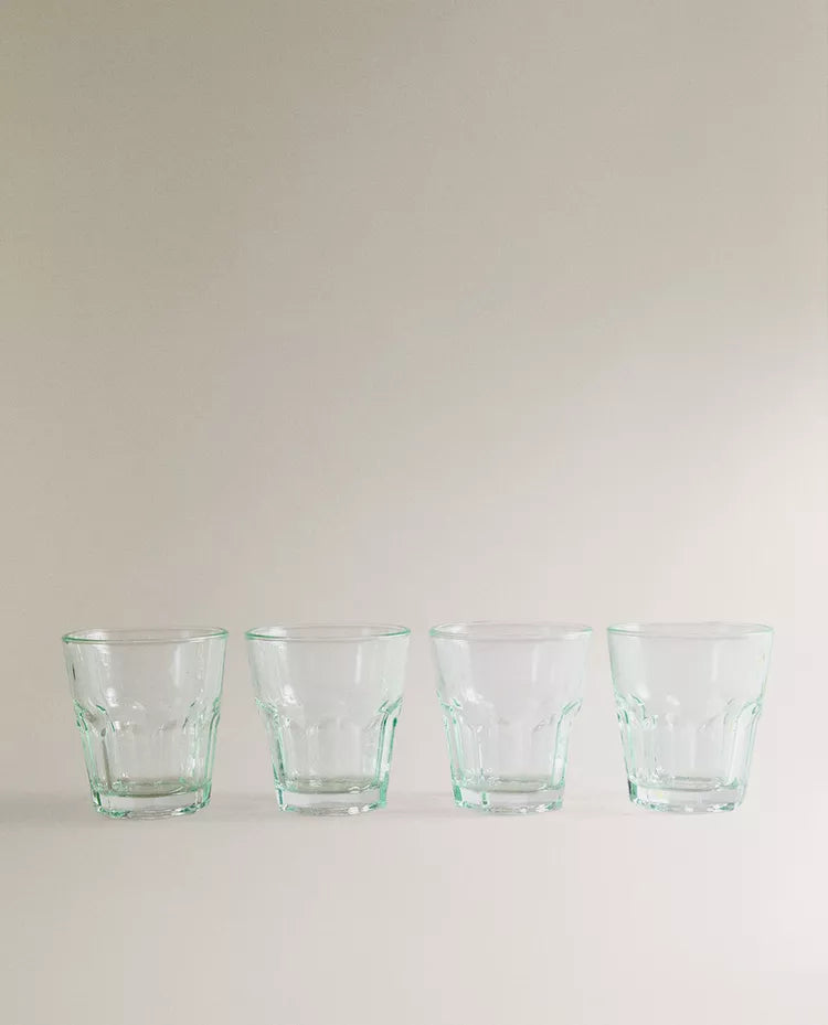 Copo em vidro com desenhos em relevo na base. Capacidade: 200 ml Altura Largura Profundidade 8.3cm 7.8cm 8.3cm Read more