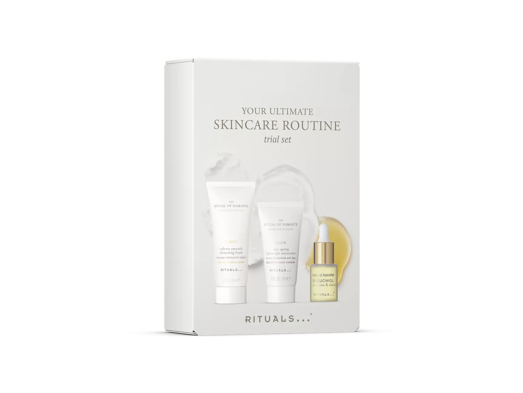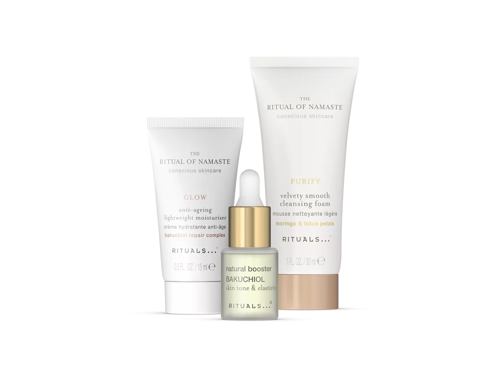 A sua rotina diária de cuidados de rosto completa num conjunto prático – ideal para oferecer, viajar ou experimentar algo novo. Esta rotina de três passos começa com uma espuma de limpeza suave, sem sabão, seguida do booster de Bakuchiol, para ajudar a melhorar o tom da pele. Termine com o nosso hidratante anti-idade de textura ligeira, enriquecido com bakuchiol, para suavizar as linhas finas e restaurar a resplandecência. Adequado para todos os tipos de pele. Contém a espuma de limpeza suave aveludada 30 ml, o booster de Bakuchiol 6,5 ml, hidratante anti-idade de textura ligeira 15 ml.