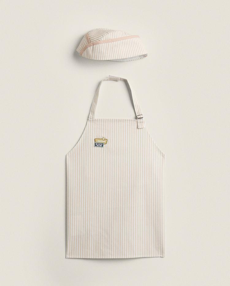 Disfarce infantil de cozinheiro, composto por avental e gorro com design às riscas e logótipo à frente.Tamanho recomendado para crianças... Read more