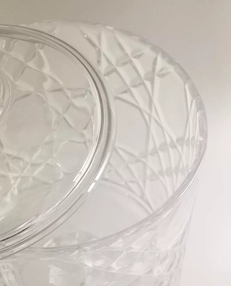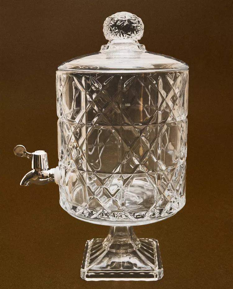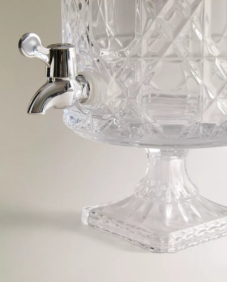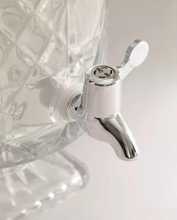 Dispensador de bebida elaborado em vidro com torneira de aço e tampa. Design com relevo em forma de losangos. Altura... Read more