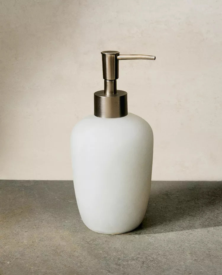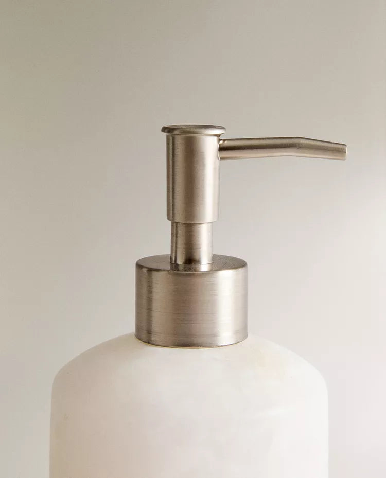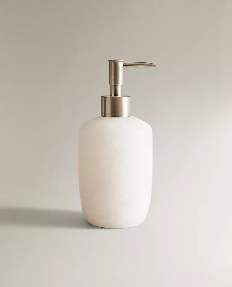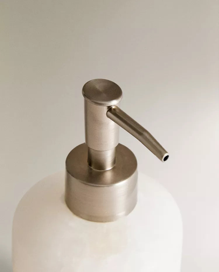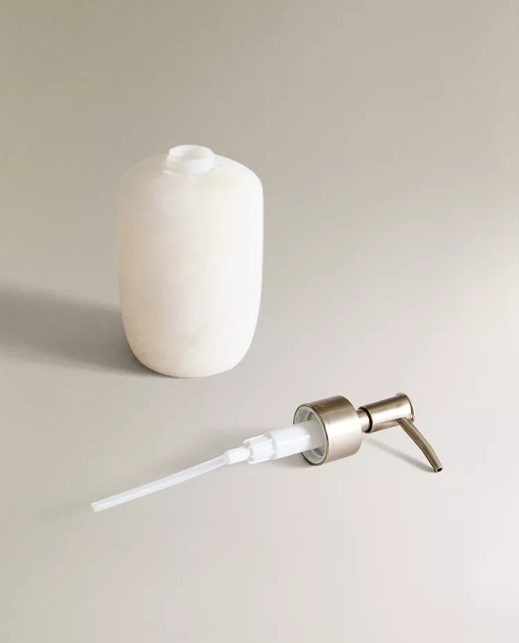 Dispensador de sabonete líquido em alabastro com forma cilíndrica e linhas simples.A sua forma e cor podem variar de uma... Read more