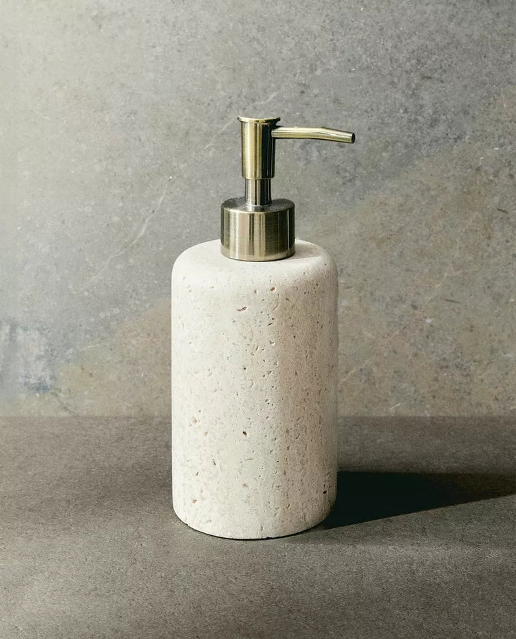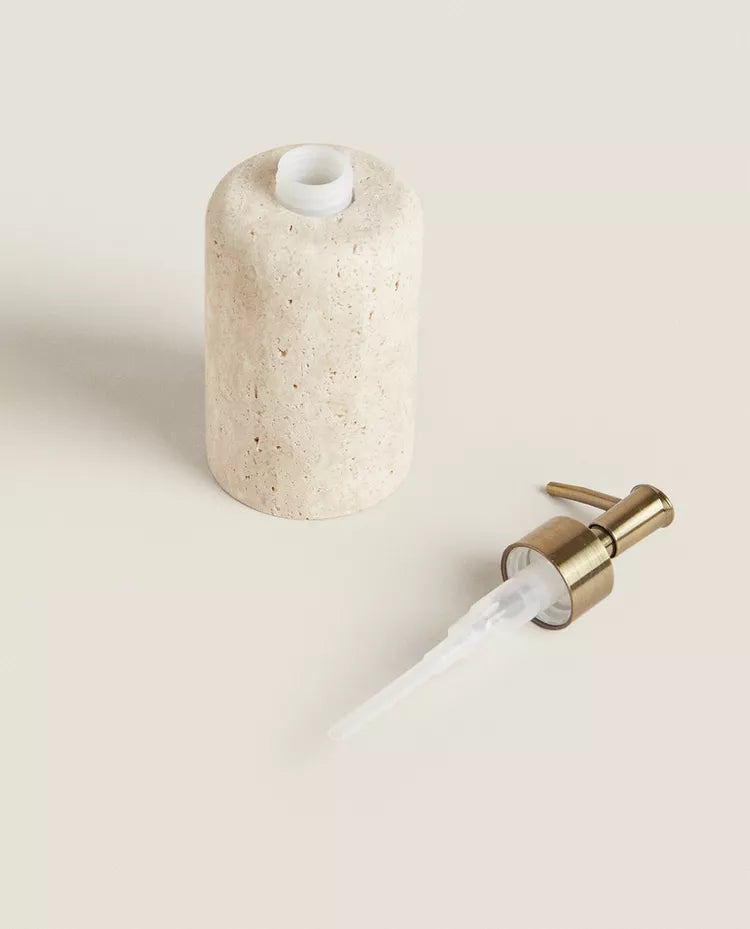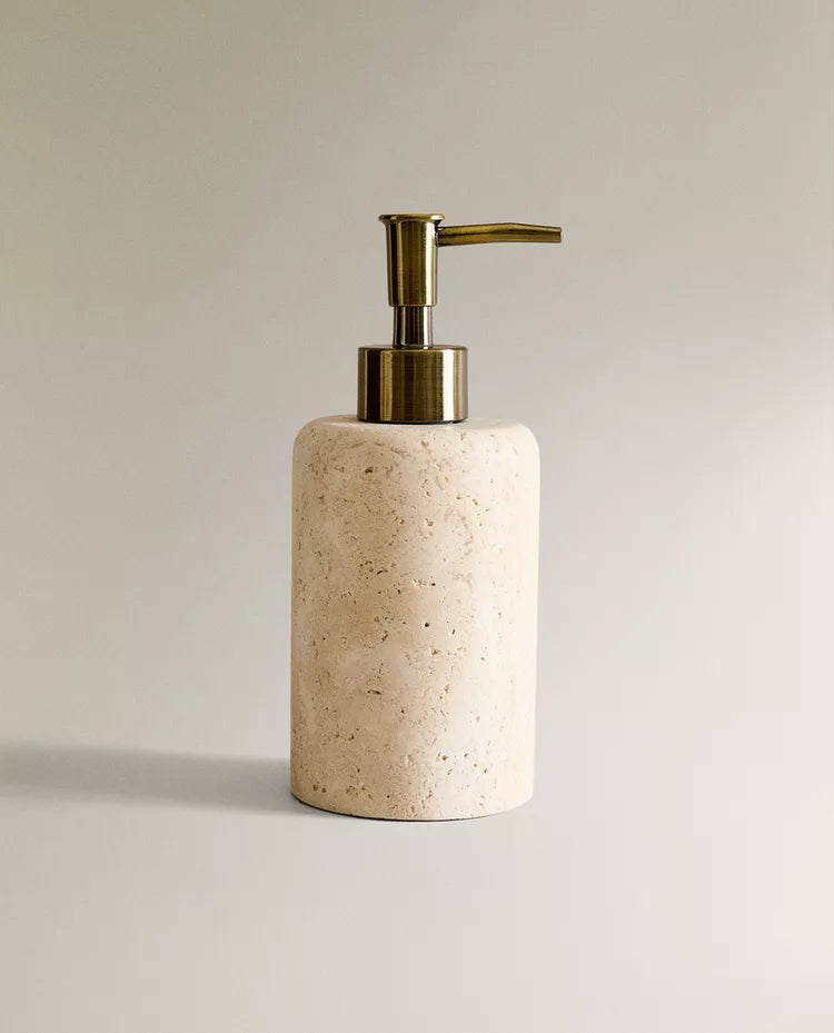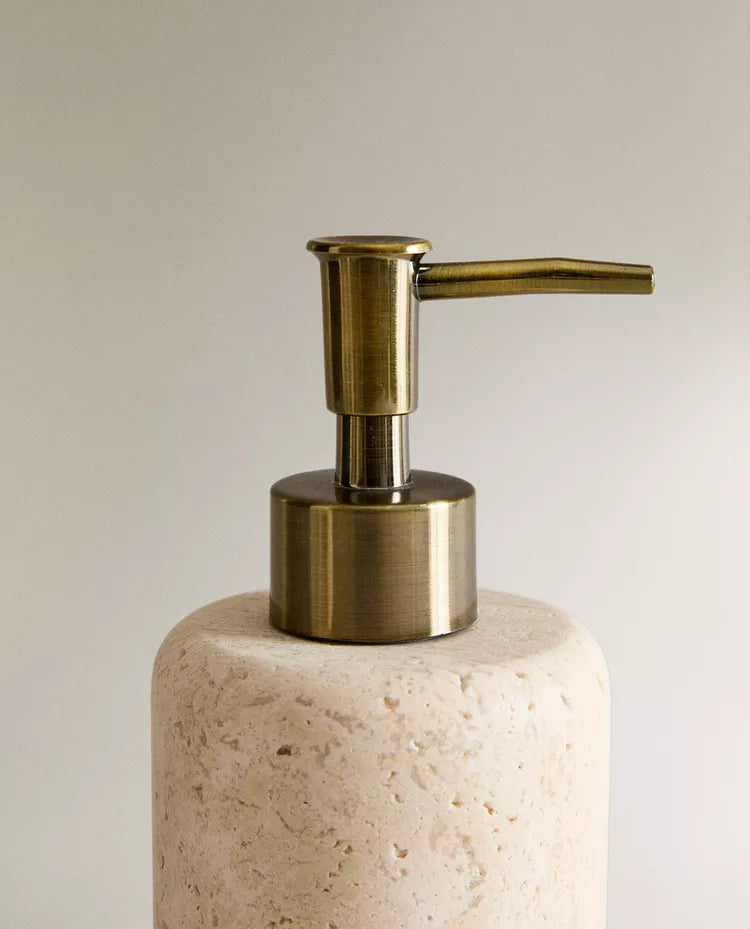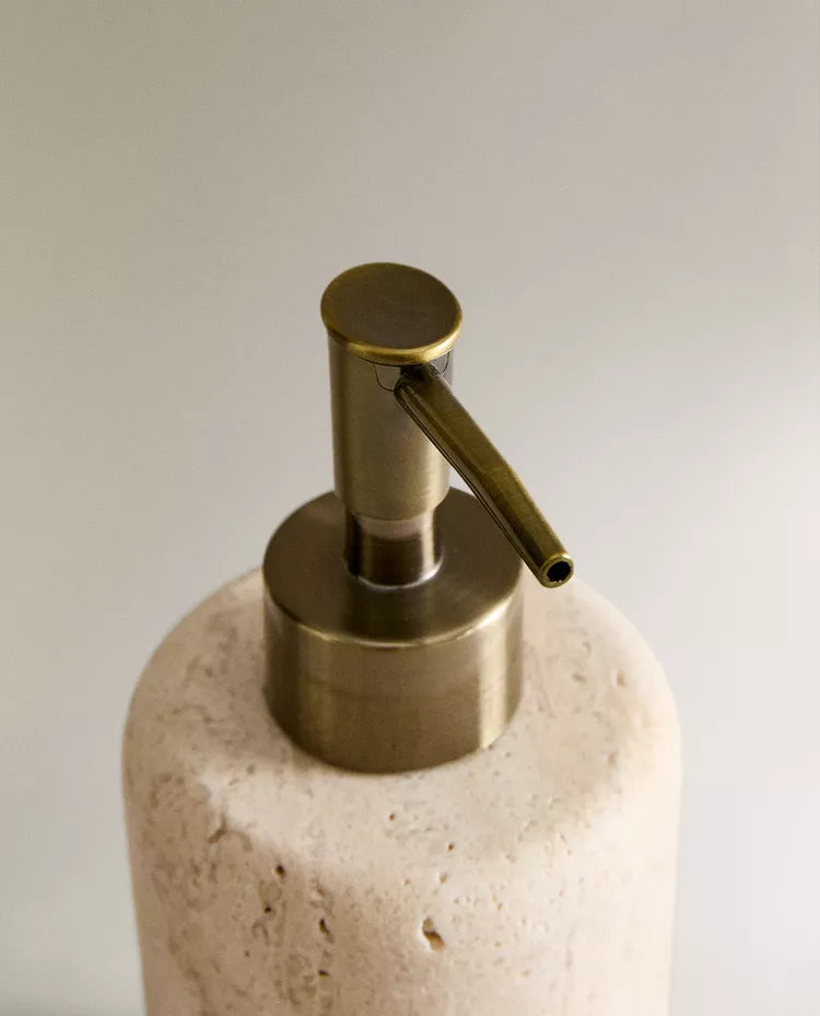 Doseador de sabonete líquido em mármore bege com borda arredondada e dispensador cromado. Capacidade: 125 ml Altura Largura Profundidade 17.8cm 7.5cm... Read more