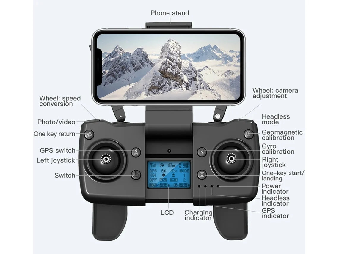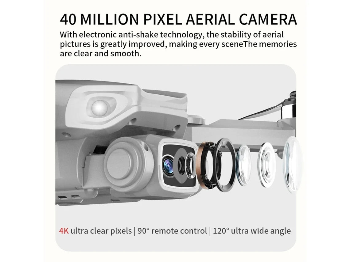 Características principais: Drone L900 PRO SE - tem uma série de vantagens que não se encontram noutros drones com um nível de preço semelhante. Tempo de voo Longo de até 25 minutos - considerando que noutros drones o tempo de voo é normalmente de 5-10 minutos, neste modelo é 2-3 vezes mais Longo. Bateria grande de 2200 mAh para um voo mais agradável. Não é necessário carregá-la constantemente. A bateria é retrátil e pode ser facilmente substituída pela bateria incluída. Não é necessário Ligar as fichas ou abrir a tampa da bateria. Basta introduzir a bateria e está tudo pronto a funcionar. Braços dobráveis: facilitam o transporte e a arrumação do modelo drone. A dobragem e a desdobragem demoram apenas alguns segundos. O drone dobrado ocupa quase o dobro do espaço do que quando desdobrado. Comando à distância intuitivo e simples - A unidade de comando foi concebida à semelhança dos comandos das consolas de jogos. Este tipo de controlo remoto é o mais confortável, simples de utilizar e fácil de aprender para todos os utilizadores. O voo é iniciado premindo o botão take off, após o que o drone paira, permitindo-lhe controlar o drone (recomenda-se uma superfície plana para a descolagem). O drone tem diferentes velocidades de voo. Para pilotos principiantes e avançados e um sistema simples para efetuar flips em pleno ar. Câmara 4K - duas câmaras, para ser exato. A câmara montada no drone transmite uma imagem muito nítida para o seu telemóvel em tempo real. É possível gravar vídeos e tirar fotografias de qualidade decente. É possível alterar manualmente a inclinação da câmara. Isto permite-lhe tirar melhores fotografias das imagens gravadas. Modo de zoom: ampliação até 50x! Câmara com rotação de 90 Equipada com eletrónica integrada na câmara de controlo elétrico 4K ultra nítida, proporciona estabilidade e equilíbrio. Capaz de eliminar eficazmente a vibração da câmara. Capaz de gravar vídeo e tirar fotos, que são armazenadas diretamente na memória do telefone. LEDs - O drone está equipado com LEDs. Com uma câmara inferior adicional, o drone está equipado com uma função para manter a altitude, bem como a posição. Esta função é denominada Posição de Fluxo Ótico. Facilita o voo. Modo de gestos: Esta é outra nova função introduzida neste modelo. Quando Lhe são mostrados os gestos adequados com as mãos, o drone pode reconhecê-los e executar uma função específica, como tirar uma fotografia.