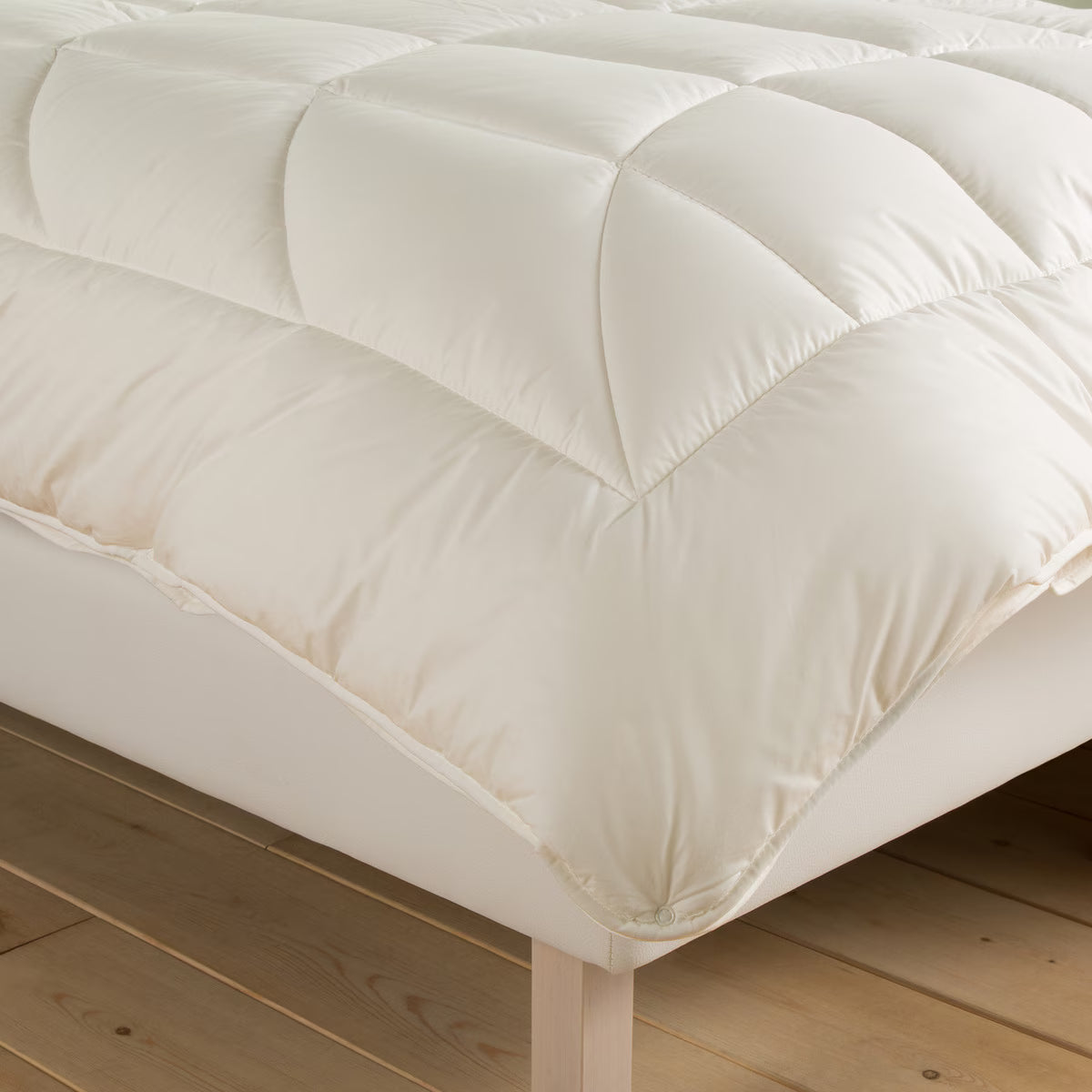 A cobertura exterior de ambos os edredões é 100% algodão batiste com um acabamento em óleo de jojoba que lhe dá um toque de seda extra suave.