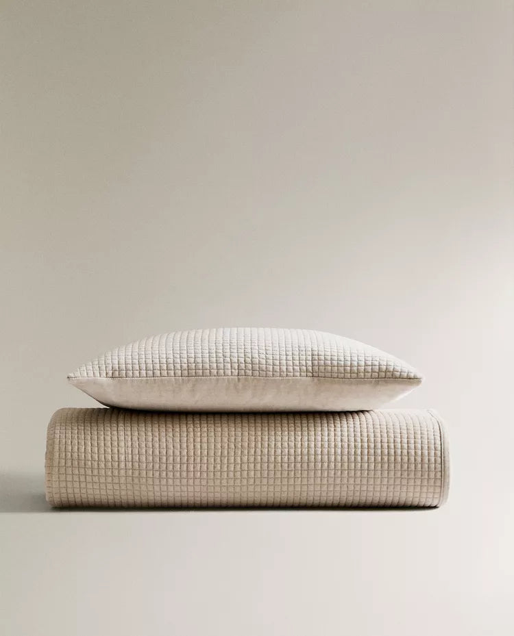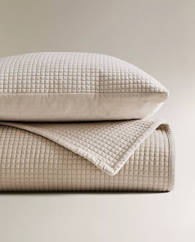 Edredão confecionado em algodão. Textura aveludada com design de miniquadrados. Tamanho Cama 160/180cm(270 x 280 cm Read more