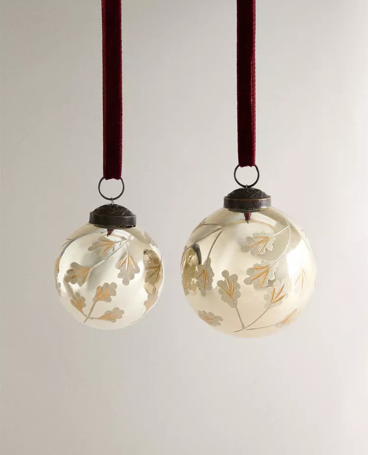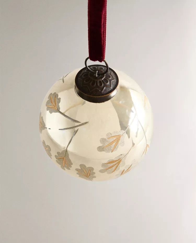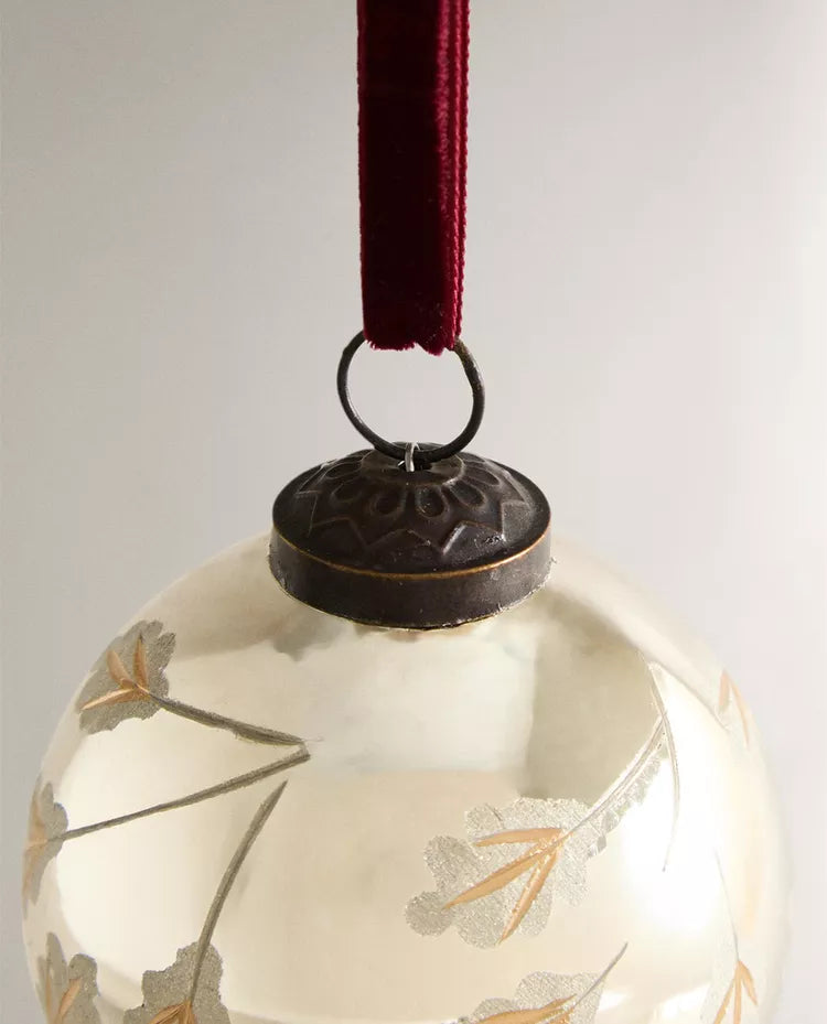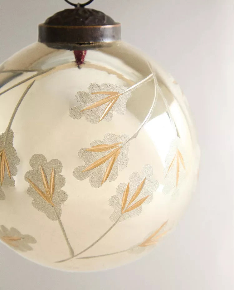 Enfeite para árvore de Natal em forma de bola de vidro com efeito espelhado e pormenor de folhas. Tamanho 5... Read more