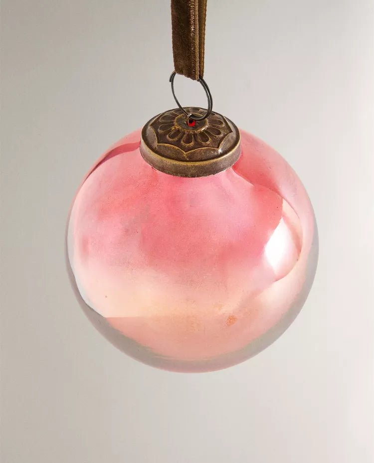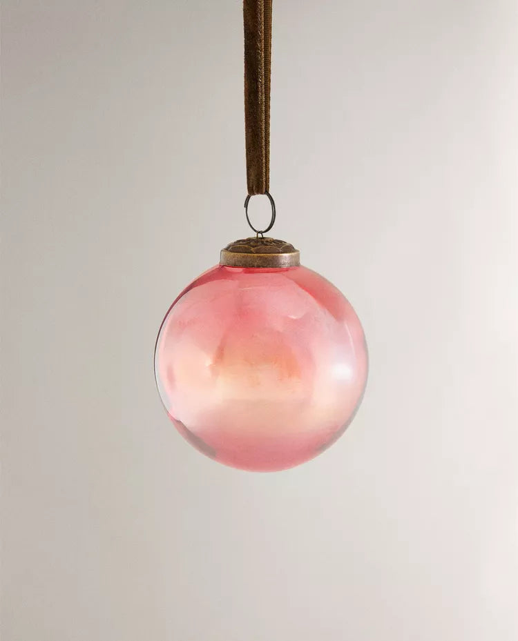 Enfeite para árvore de Natal em forma de bola, elaborado em vidro vermelho translúcido. Altura Largura Profundidade 9cm 9cm 9cm... Read more