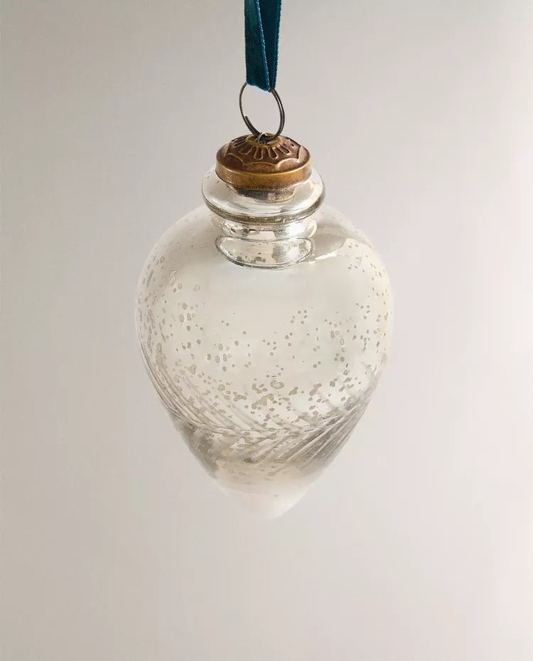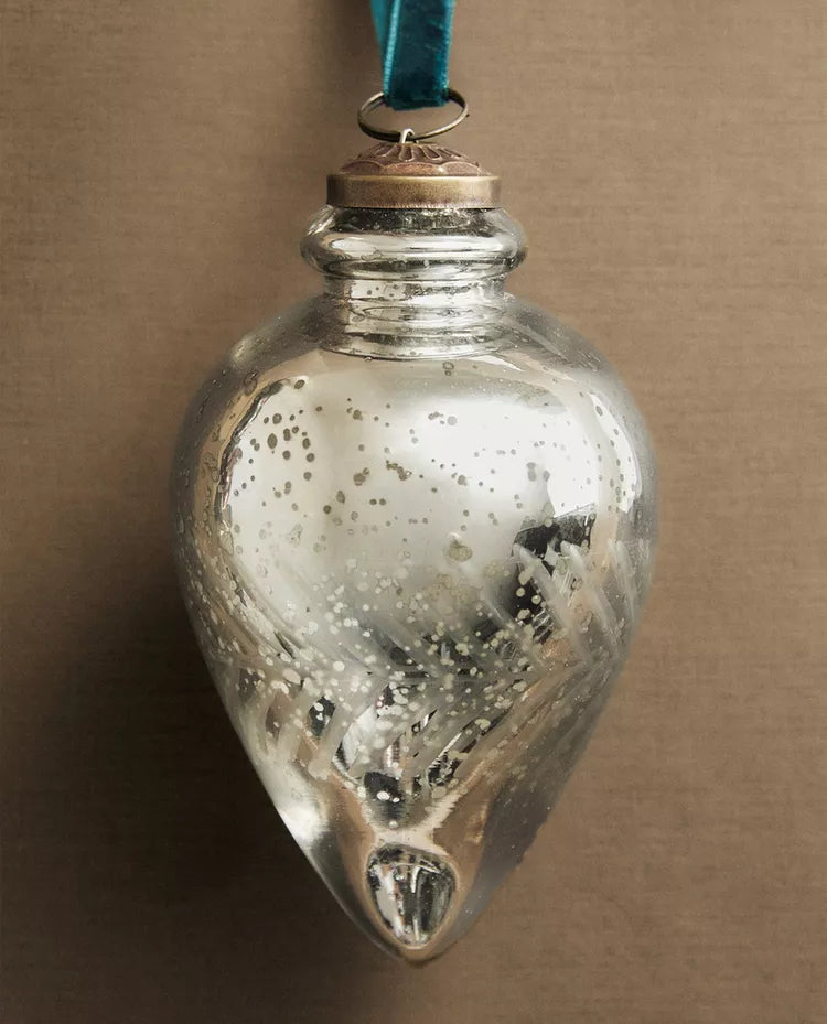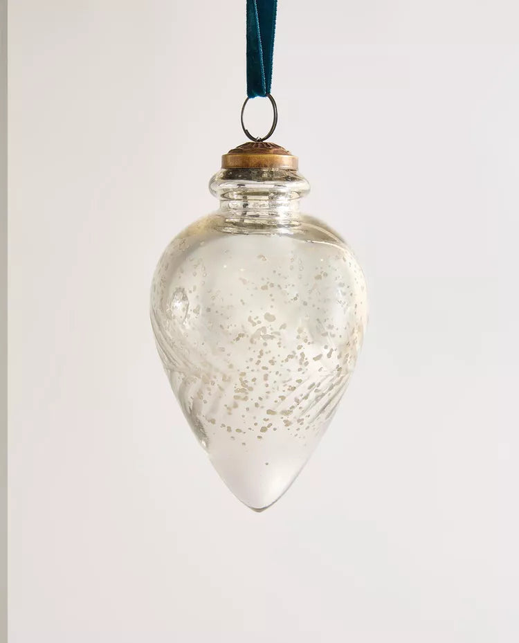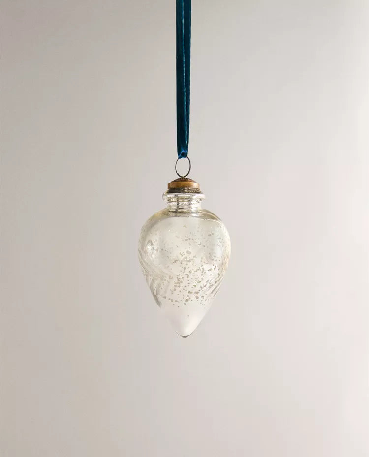 Enfeite para árvore de Natal de vidro brilhante com forma de gota e design floral. Altura Largura Profundidade 13cm 8cm... Read more