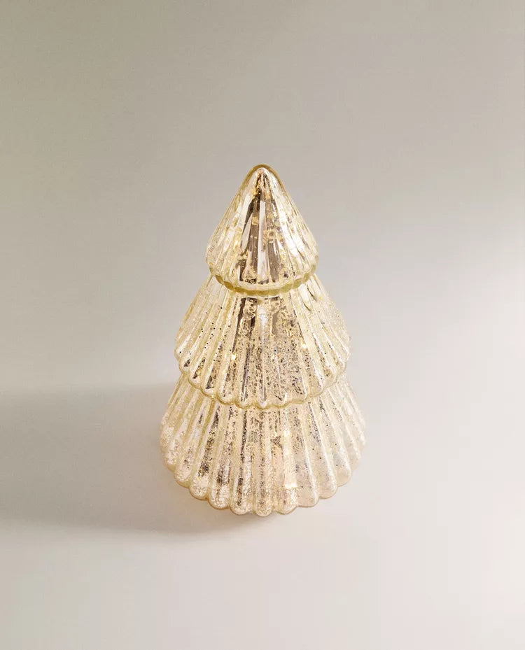 Enfeite em forma de árvore de Natal com luz no interior e movimento giratório.Funciona com 3 pilhas de tipo AA... Read more