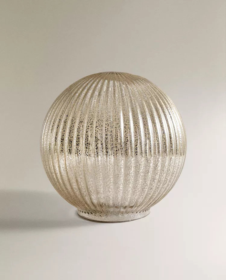 Enfeite decorativo de Natal em vidro com forma de bola com luz LED no interior e acabamento às riscas.Funciona com... Read more